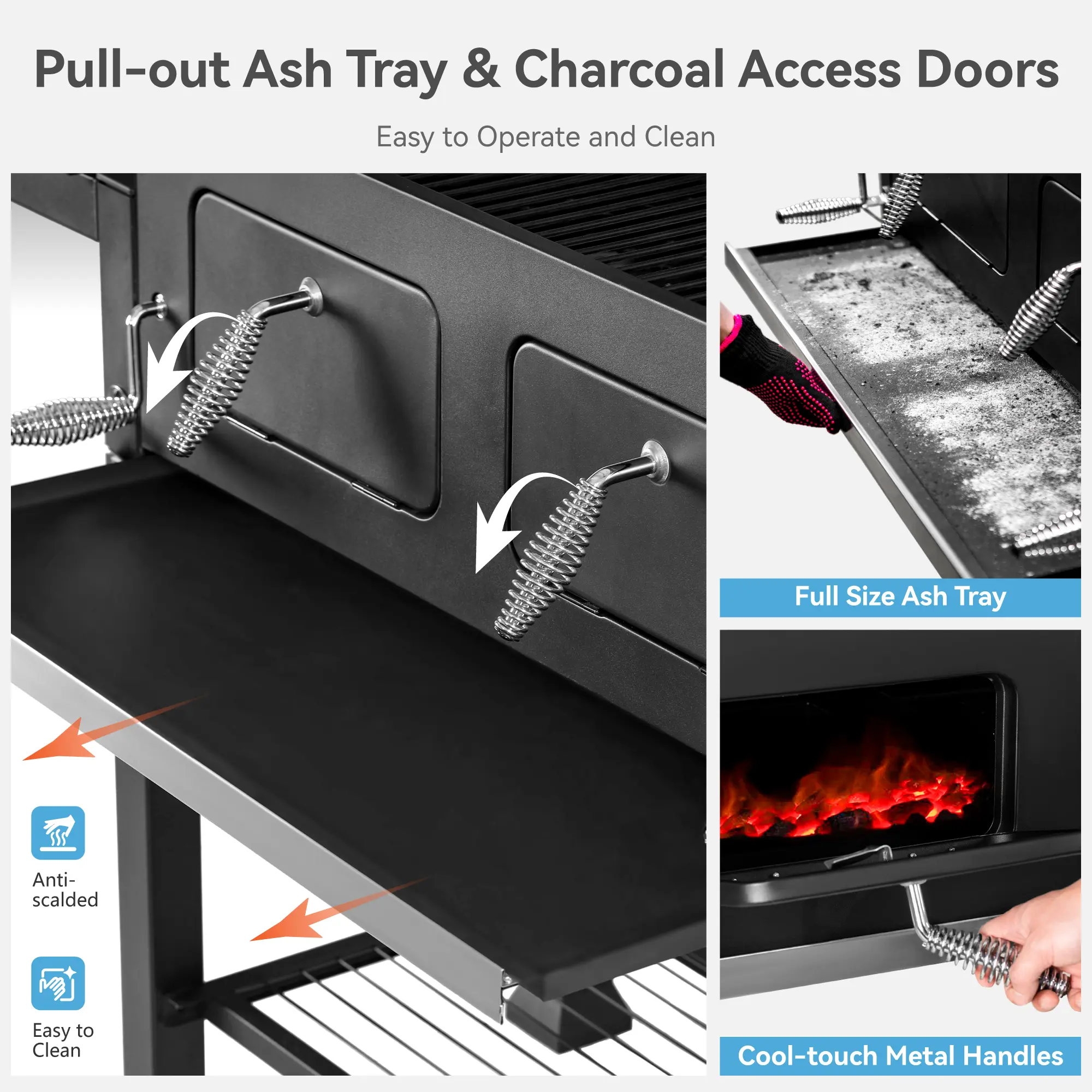·Easy Maintenance: The easy clean design of the charcoal ash collect tray makes it simple to maintain after use.