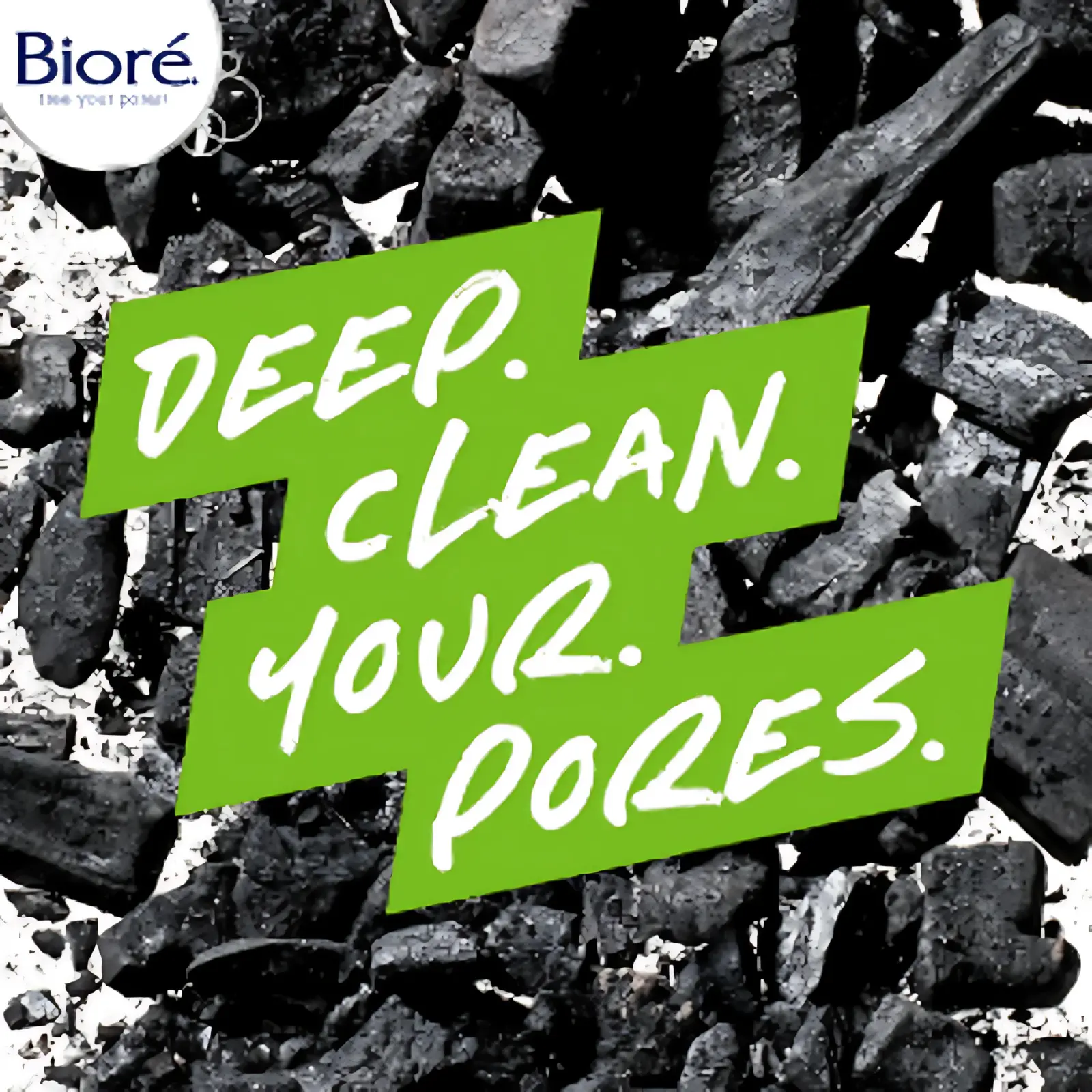 Skin acting up? Try Bioré Charcoal Cleanser! This oil-controlling formula with natural charcoal removes pore-clogging impurities, cleaning twice as effectively as basic cleansers. It foams white, rinses clean, and deeply purifies pores with Japanese Skin Purifying Technology, delivering visible results after just one use!