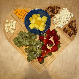 I am really loving this wooden charcuterie board. It's got multiple magnets on each piece allowing you to arrange the board into a heart, long oval or 2 separate boards which is such a unique idea. It feels very durable and can fit quite a bit of different foods on the board. I love it!