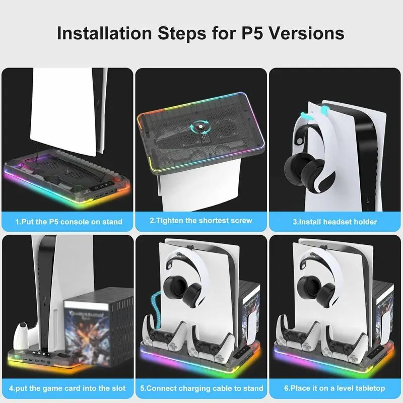 【Dual PS5 Support】: Supports dual PS5 controllers simultaneously, ensuring optimal cooling and charging efficiency.
