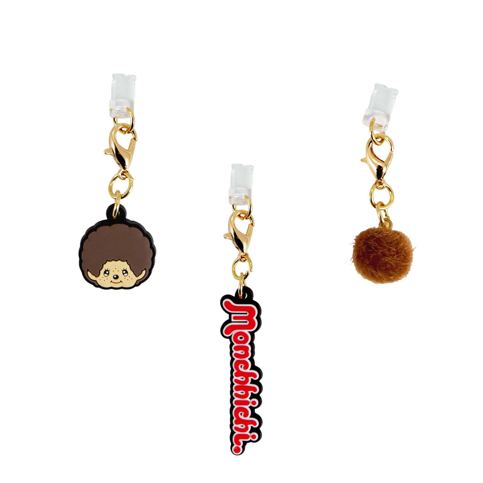 ·3-pack includes 1 silicone Monchhichi Boy charm, 1 Brown Pompom charm, and 1 silicone Logo charm