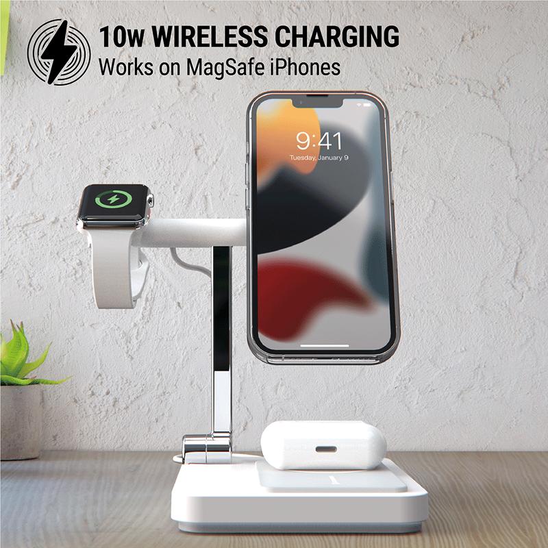 Transform your charging experience with the MagicMount Base Pro 3-In-1 Magnetic Wireless Charging Stand. This versatile stand charges and displays three devices simultaneously, perfect for home or office. It's an essential accessory for modern users.
