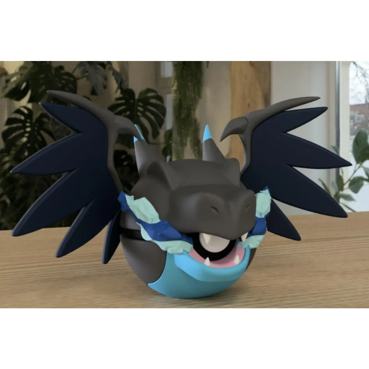 This Charizard X–inspired 3D printed Poké Ball is built around the intense, blue-flame aesthetic inspired by Mega Charizard X. Featuring a bold black base with electric blue fire-style accents, this design delivers a heavier, more aggressive look than classic Charizard—perfect for collectors who like their displays loud and legendary.