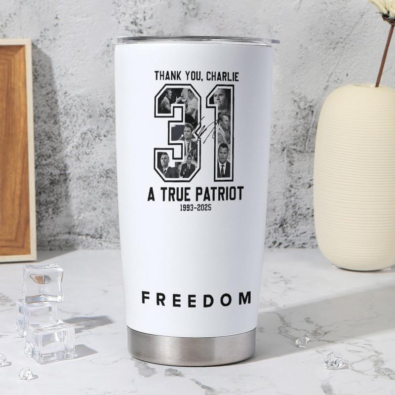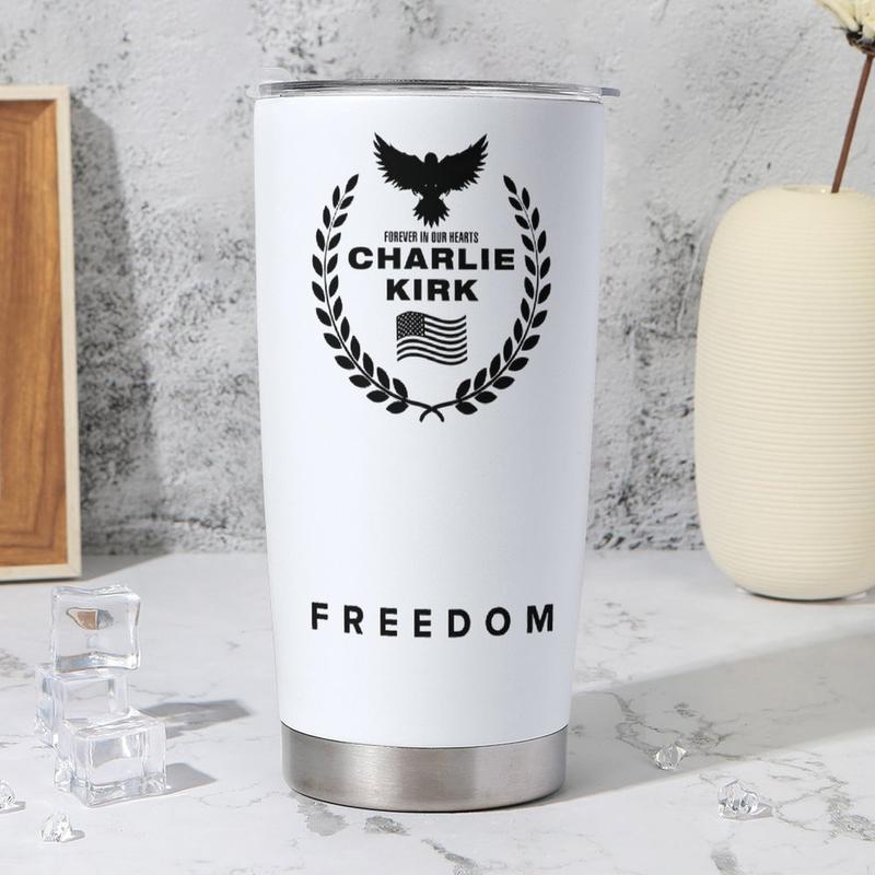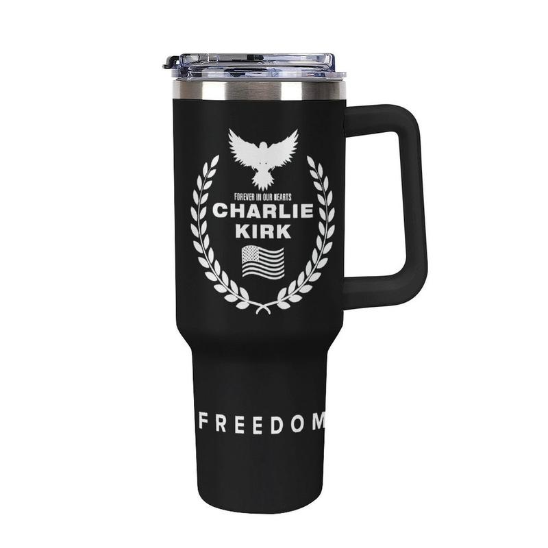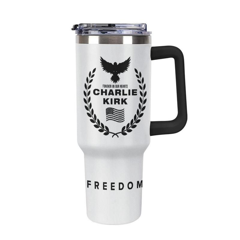 Charlie Kirk Memorial Tumbler, Political Statement Tumbler, Patriot Memorial Gifts, 20oz 40oz Large-Capacity Thermos Tumbler, Black and White Handle Tumbler,Charlie Kirk Freedom Tumbler