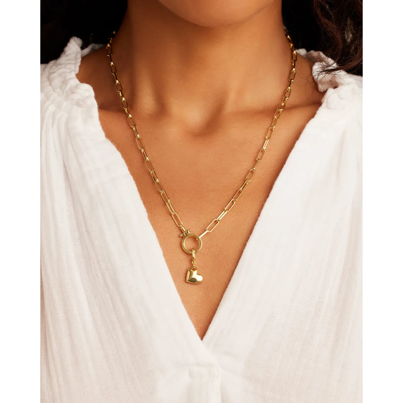Lou Heart Parker Charm – Fun, Feminine, Full of Meaning Tell your story with a charm that speaks from the heart. The Lou Heart Parker Charm adds a playful, personal touch to any chain, with its classic heart shape and radiant gold-plated finish. Lightweight and easy to wear, it’s made to move with you—day in, day out. Why You’ll Love It: Heartfelt Design – A classic heart shape that adds a sweet, stylish touch to your stack. Mix & Match Ready – Clips easily onto necklaces and bracelets with our signature hinge closure. Shiny & Sleek – Crafted in 18k gold-plated brass for a high-end look and lasting shine. Perfectly Giftable – A thoughtful charm that’s full of personality—ideal for yourself or someone you love. Wear-All-Day Comfort – Lightweight design makes it easy to add without weighing down your favorite chains. Specifications: Total drop: approx. 11/16" Heart charm: 7/16" by 3/8" Hinge closure: 3/16" by 5/16" Available in 18k gold-plated brass Care Tip: Keep your charm shining bright—avoid alcohol-based products and store in a dry place after wear. Add the Lou Heart Parker Charm to your collection and wear your heart on your chain.