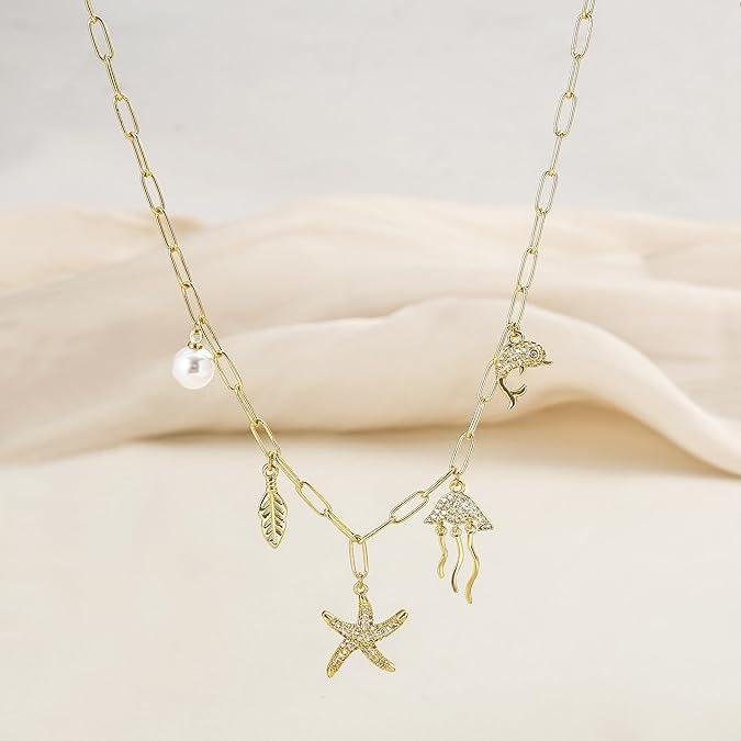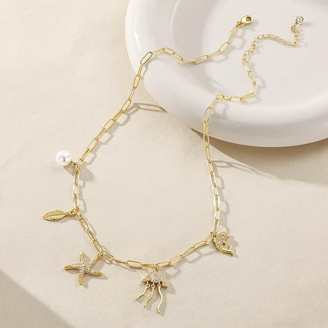 This little charm necklace tho…the jellyfish sold me ✨ #charmnecklace  #necklace  #jewelry  #tiktokshoprestock  #tiktokshopcreatorpicks
