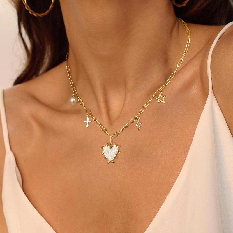 TEWIKY Charm Necklace For Women Trendy Dainty Pendant Thin Paperclip Chain Necklace CZ Fashion Jewelry Gift For Valentine's Day gifts