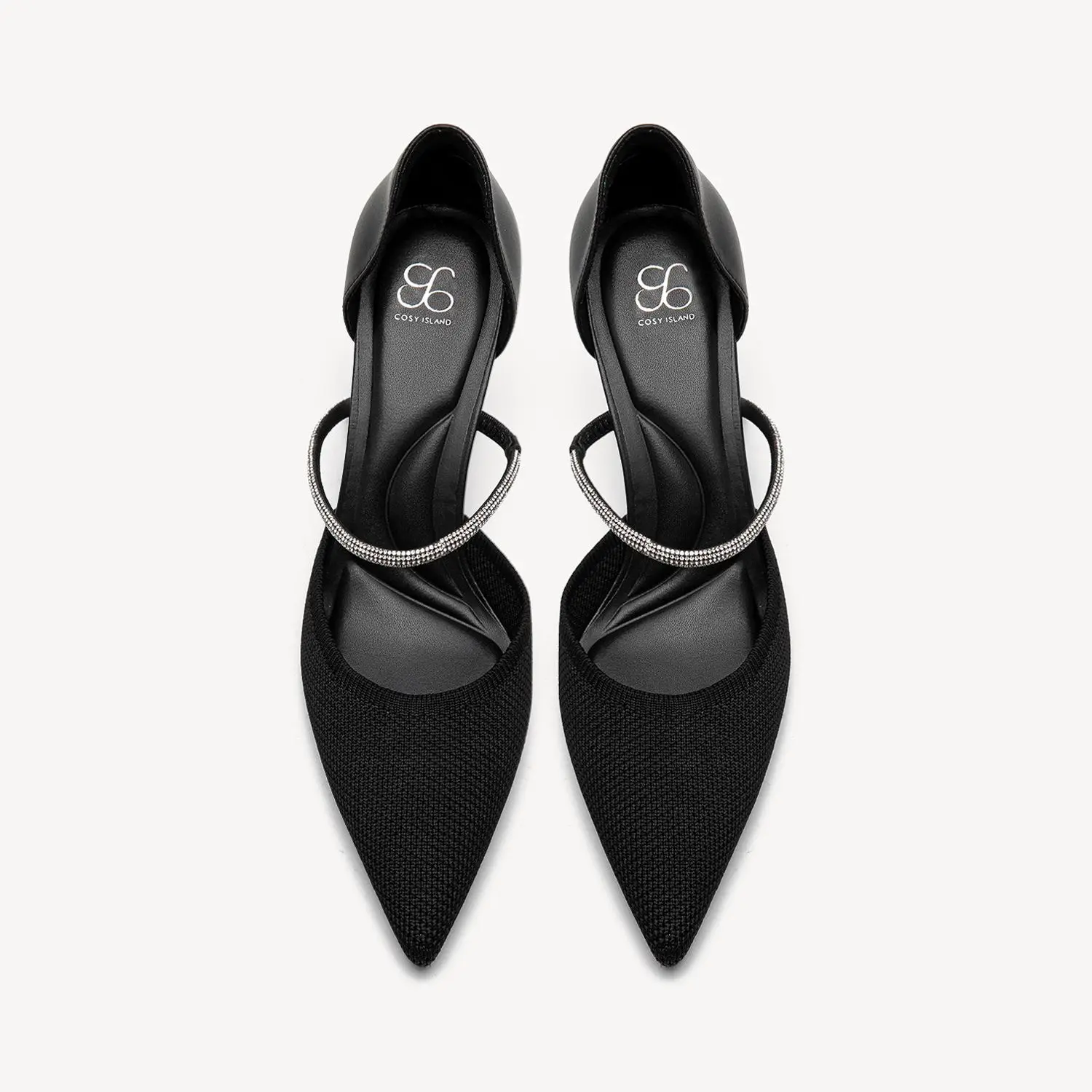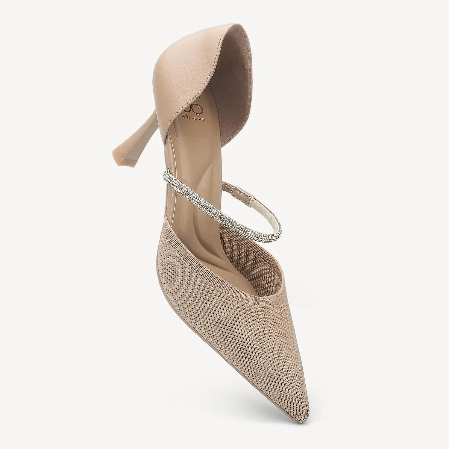 CharmElle Sparkle Pointed Toe Heeled Pumps with Elegant Ankle Strap for Women's Formal Wear