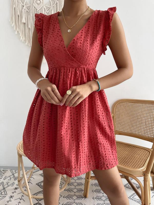 ZAFUL Women's Red Slim Fit V Neck Sleeveless Breathable Casual Summer Beach Dress for Pool Party & Street Wear Boho Sundresses