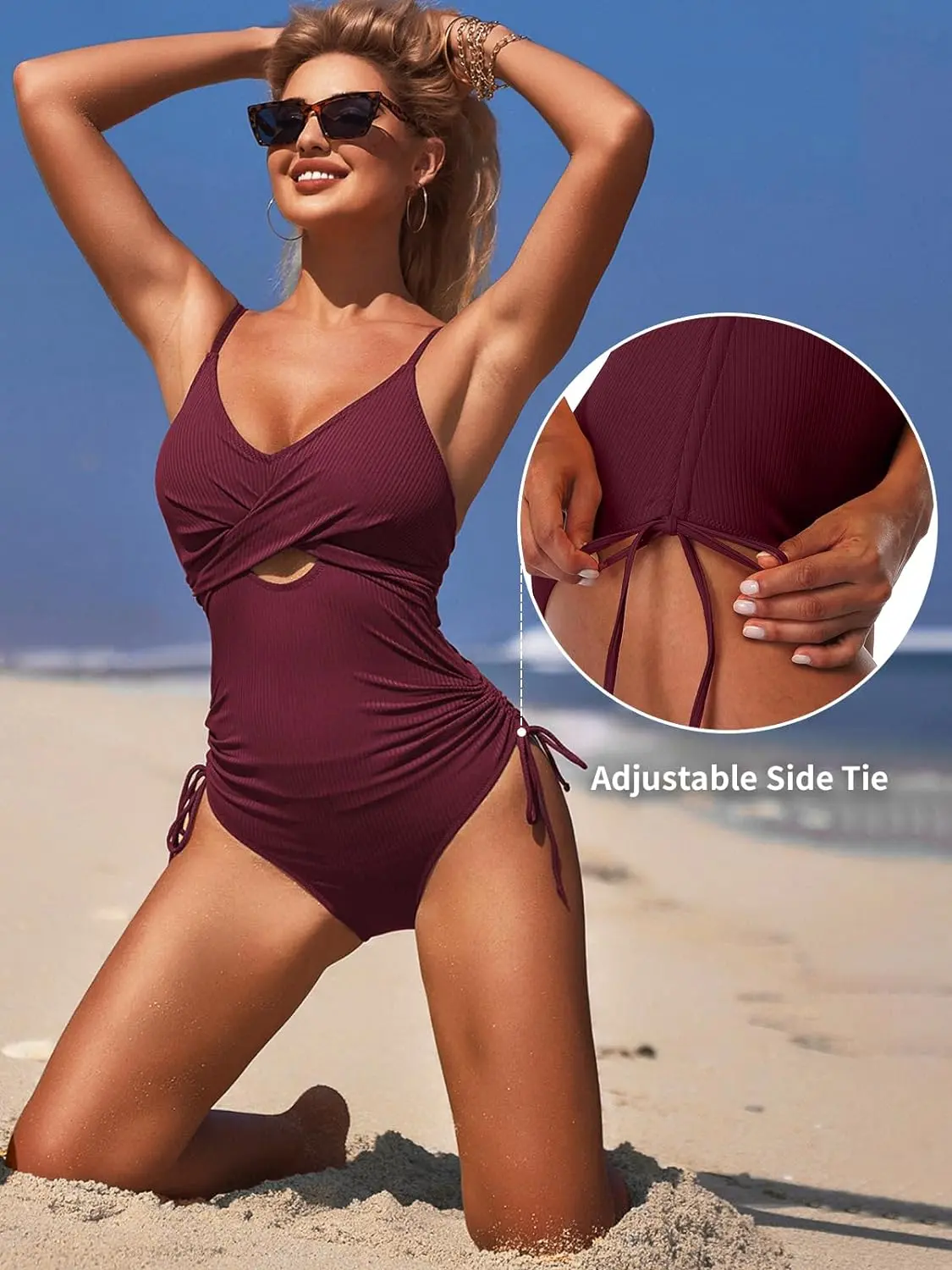·Tie Side - One piece swimsuits create a adjustable sexy high cut leg or full coverage bottoms. Bathing suit is modest still sexy at the same time. The higher tie really elongated the look of your legs your legs
