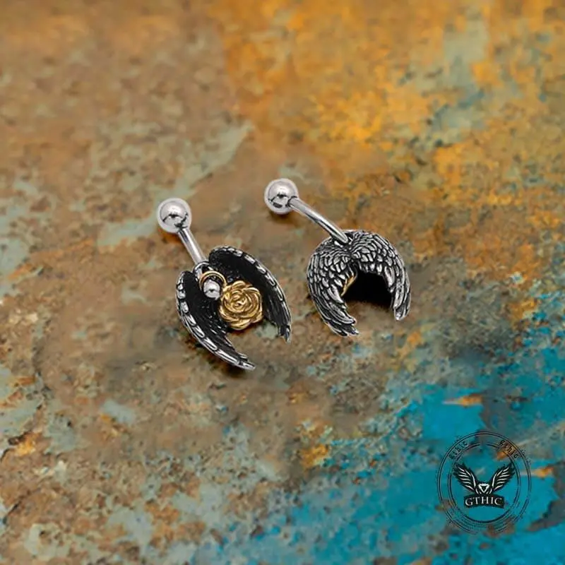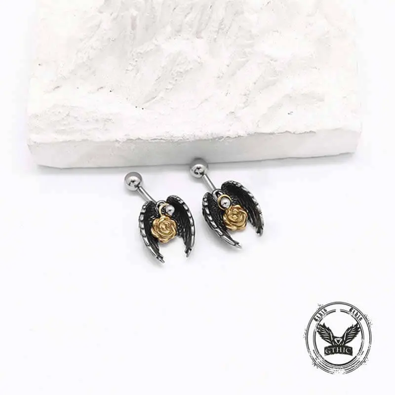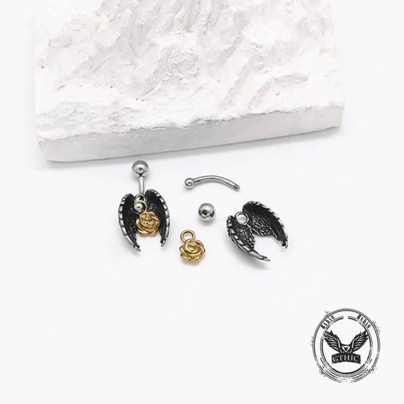 ·Elegant Feather Wings & Rose Design: This stainless steel belly ring features intricate feather wings surrounding a delicate rose, symbolizing freedom, beauty, and transformation—perfect for those who embrace both strength and elegance.