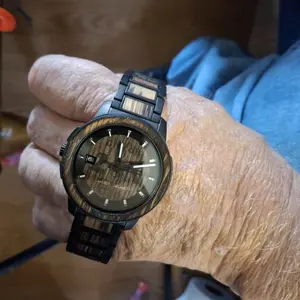 Purchased this for my husband’s 67th birthday. I was very happy with the feel of the watch when it arrived. It was beautiful and has a good weight. He looks very handsome in it.
