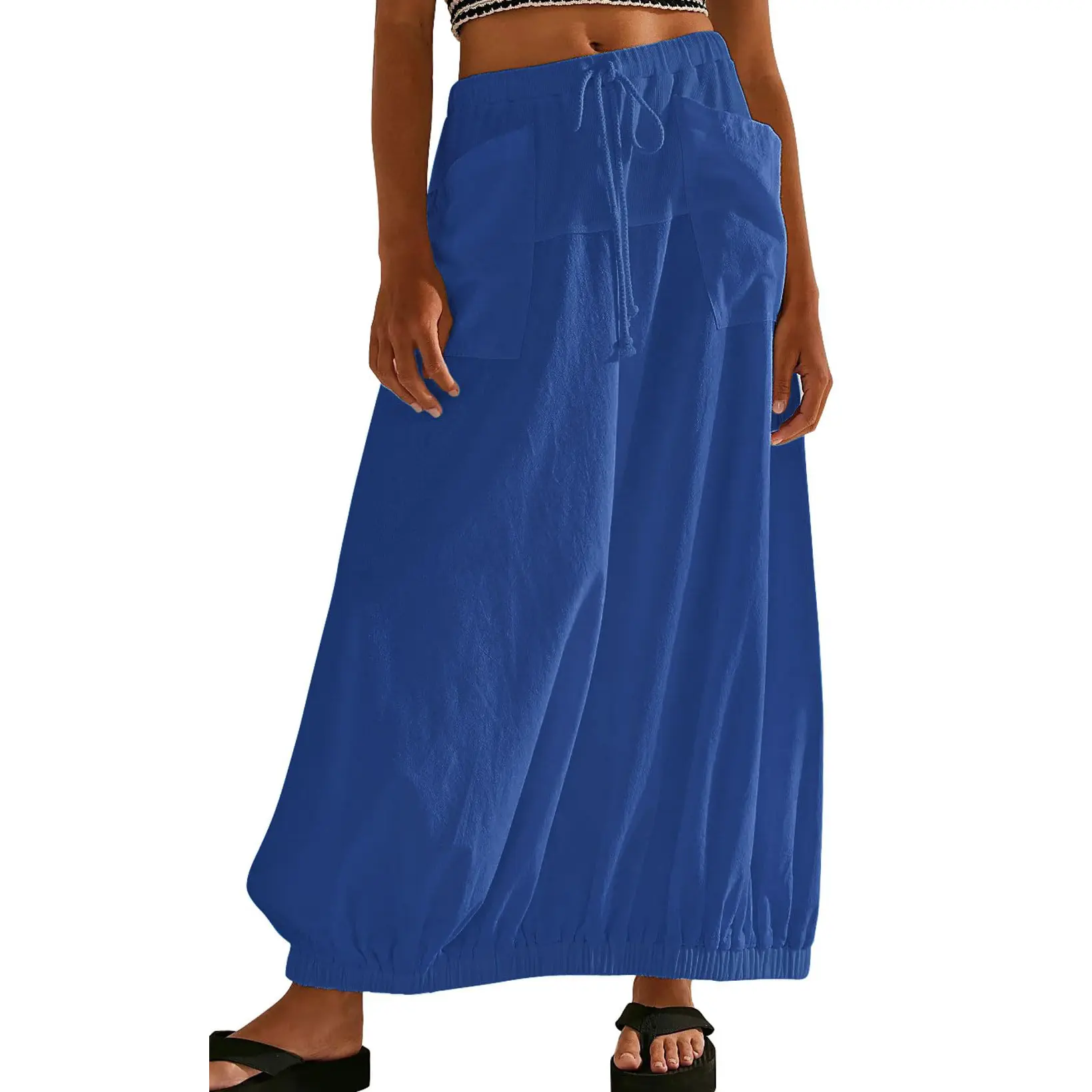 ·【Simple But Trend-on】Women lightweight drawstring waist dungarees ankle-long skirt