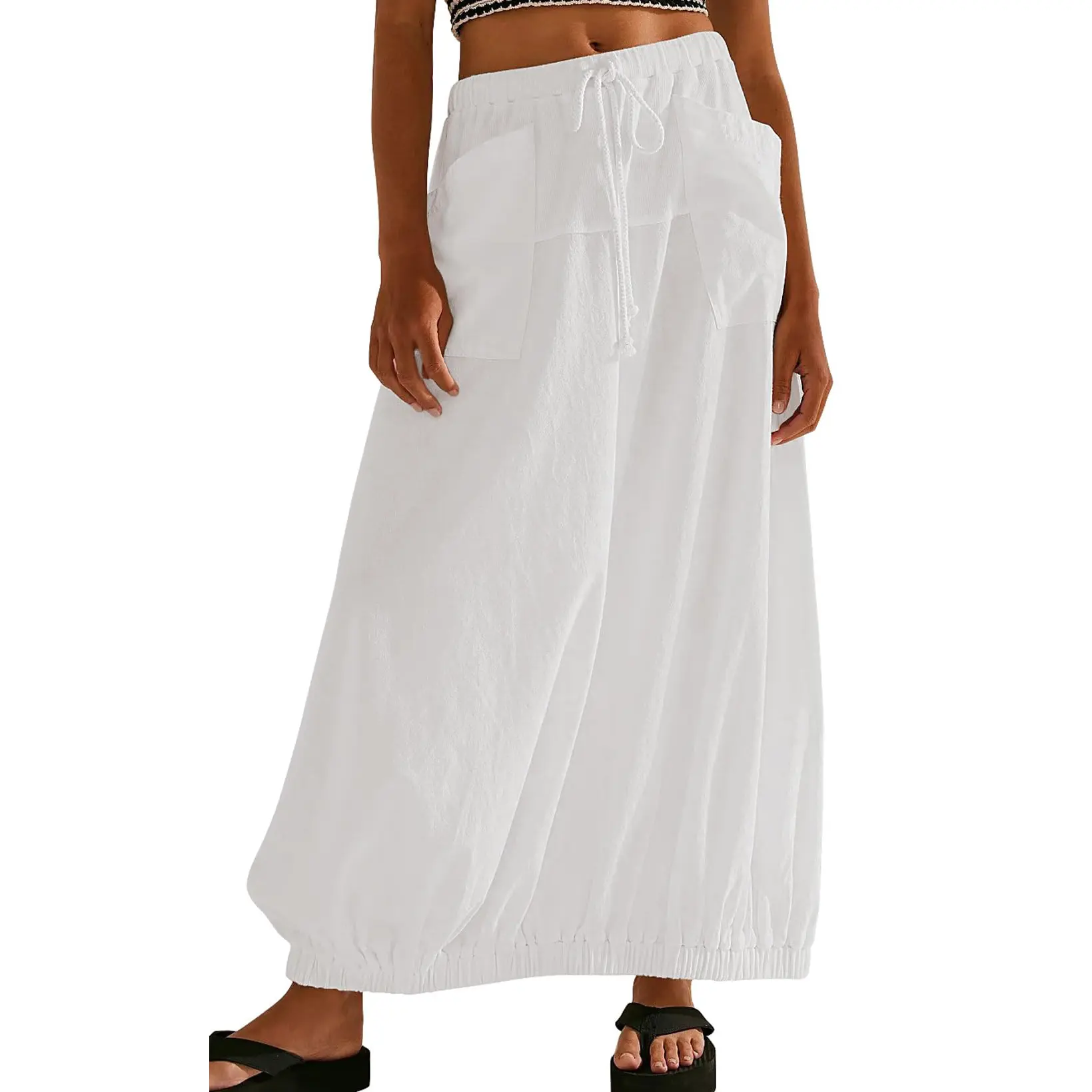 ·【Barrel Balloon Long Skirt】Y2k cargo long skirt/ baggy parachute long skirt/ boho long skirt for women/ black maxi long skirt plus size/ casual long skirt for women/ summer lightweight maxi long skirt/ drawstring waist skirt/ white long skirt for women/ casual work wear long skirt/ loose fit utility bubble skirt