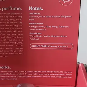 Top: The first notes you smell - Coconut, Warm Sand Accord, Bergamot, Plum