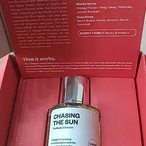 Feel the warmth of a sunkissed glow and a comforting embrace in a spritz. Chasing the Sun shines with beachy, fruity, floral, and warm musky notes to inspire the feeling of tanning under the blazing sun while unwinding in the South of France.