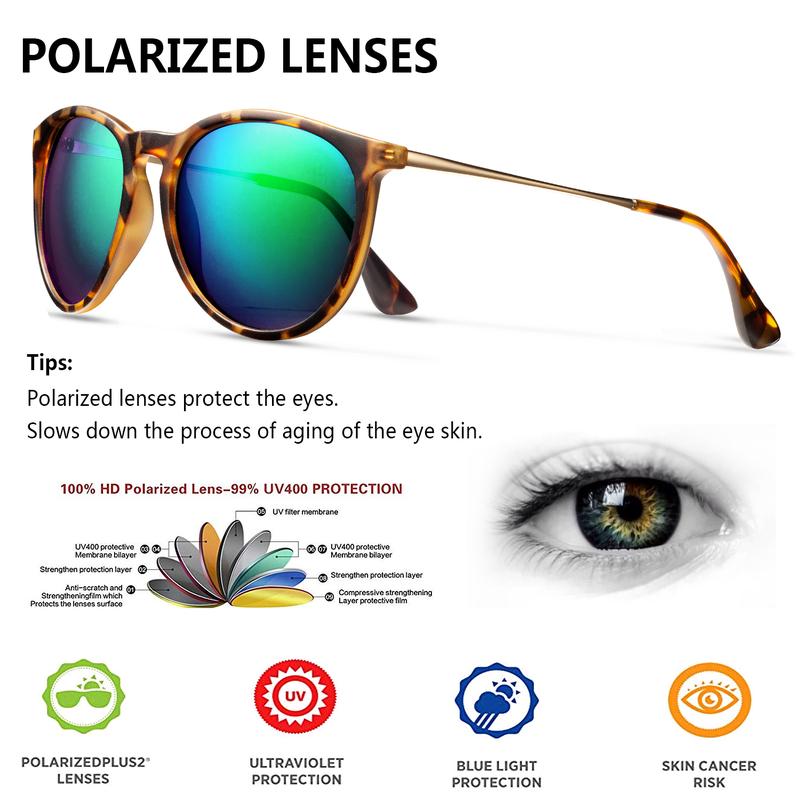Β·γ UV400 PROTECTION γ100% UV protective lenses can Block 100% of UVA and UVB Rays. UV400 sunglasses are Necessary to Protect your eyes from Long-term UV Damage and Keep your Eyes Healthy During Leisure Activities.HD Polarized Technology Lens can Effectively Reduce Reflection and Eliminate Glare from the Road, and Scaly Light on the Water Surface, Improve Contrast and Visual Clarity, Allow for True Perception of colors, Improve Visual Comfort and Effectively Reduce Eye Strain.