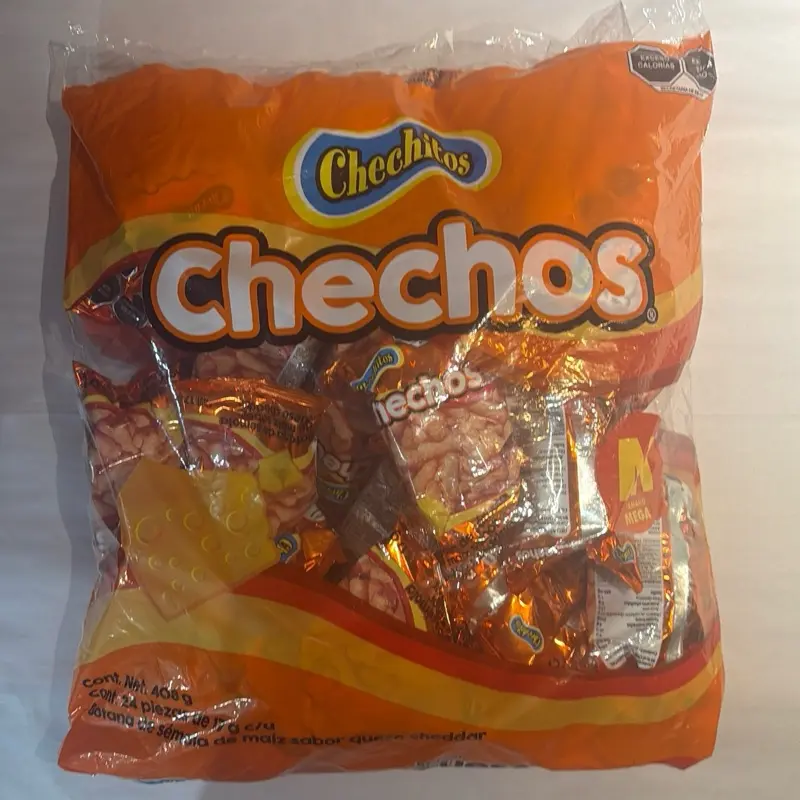 Chechitos Botaneros . Individual bags. Each bag comes with 24 individual bags. Choose from Chechos Cheddar flavor and Kikys Hot Chili.