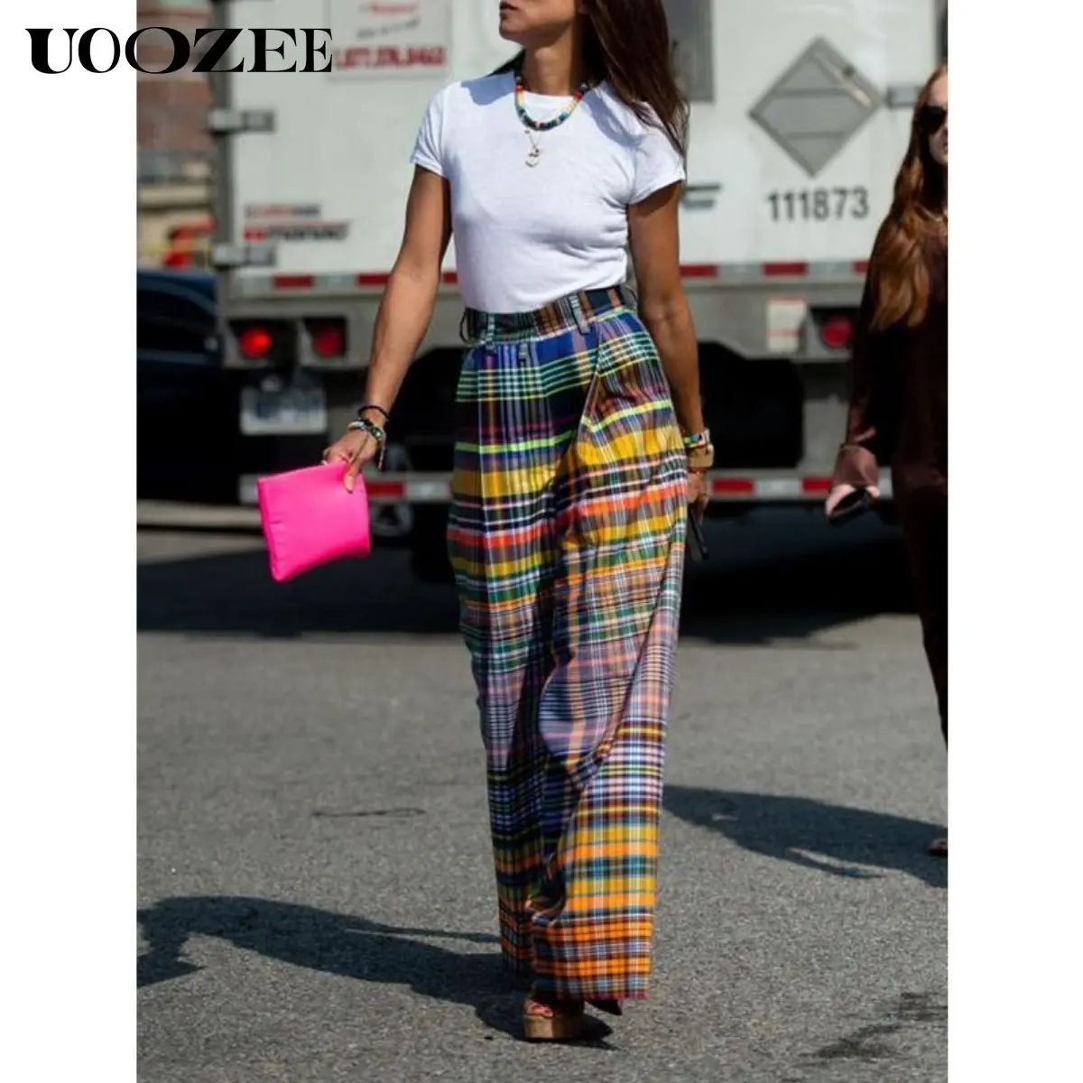 5. UOOZEE- LIVE Women's Loose Wide Leg Checkerboard Printed Casual Pants Bottoms Pants Baggy Womenswear