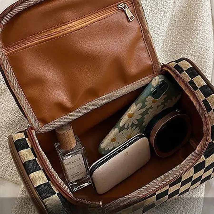 I’m so happy with this makeup bag from TikTok Shop. The black, white, and brown color palette is gorgeous and timeless. The quality exceeded my expectations, thick material, great structure, and durable zipper. It has enough space for all my daily makeup and more. Highly recommend!