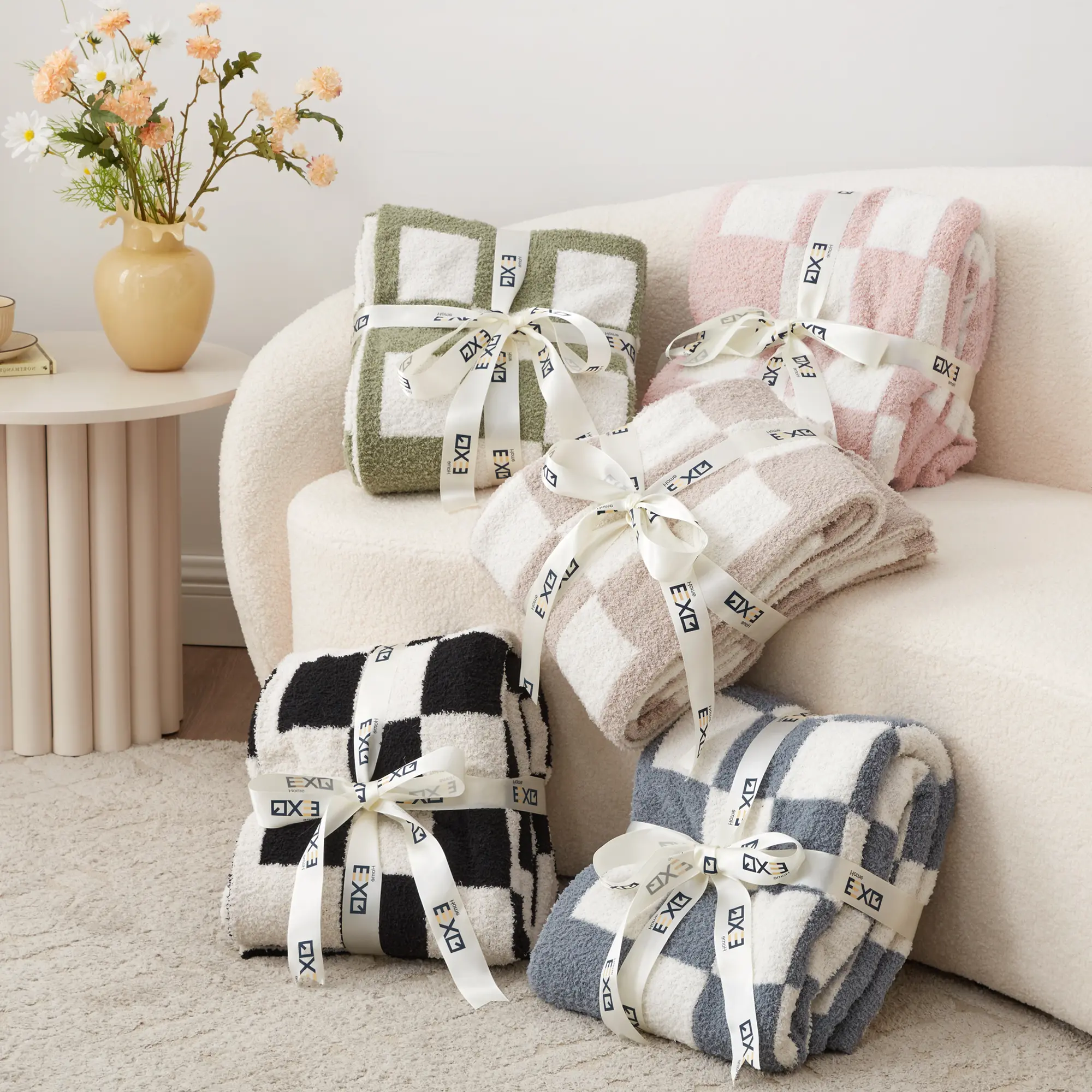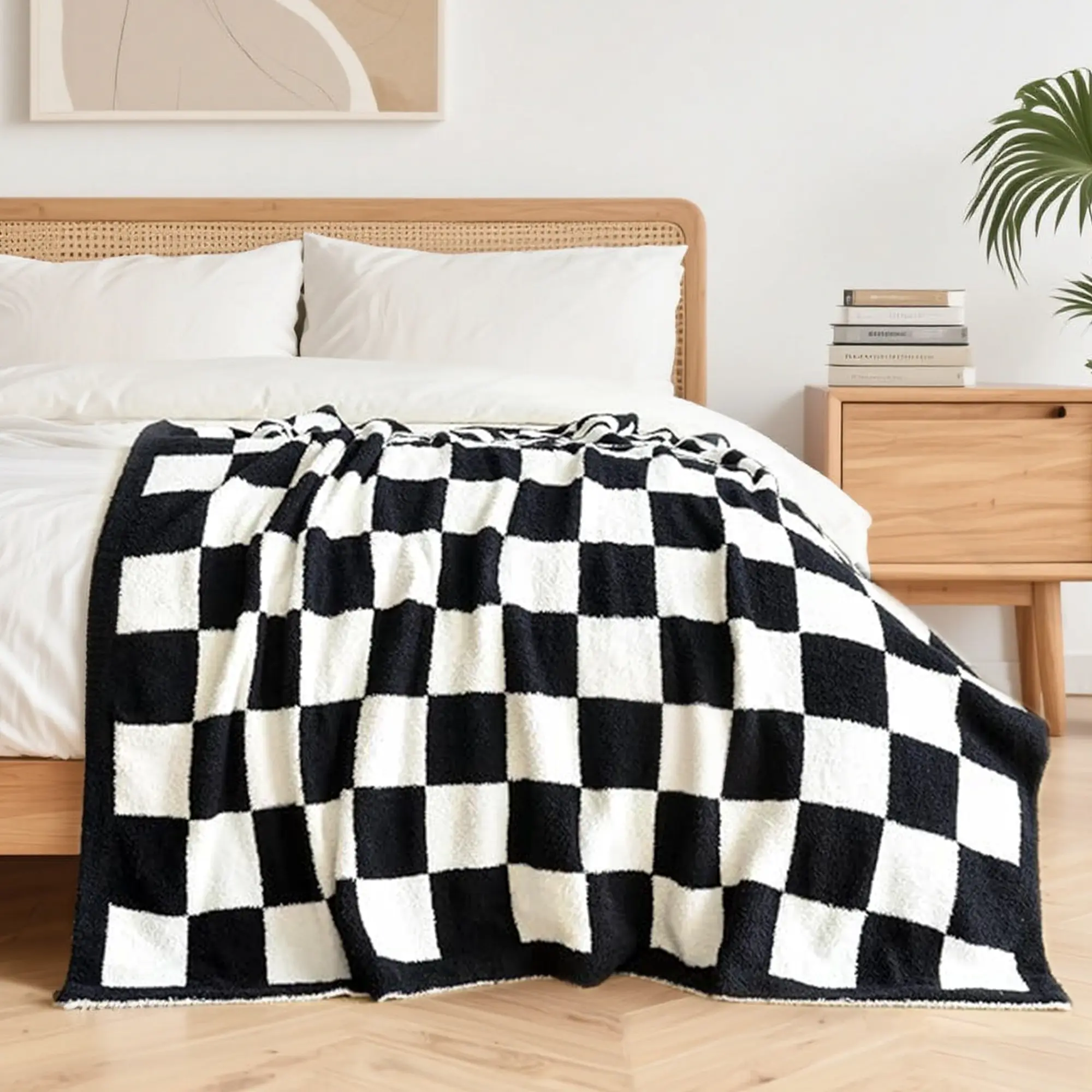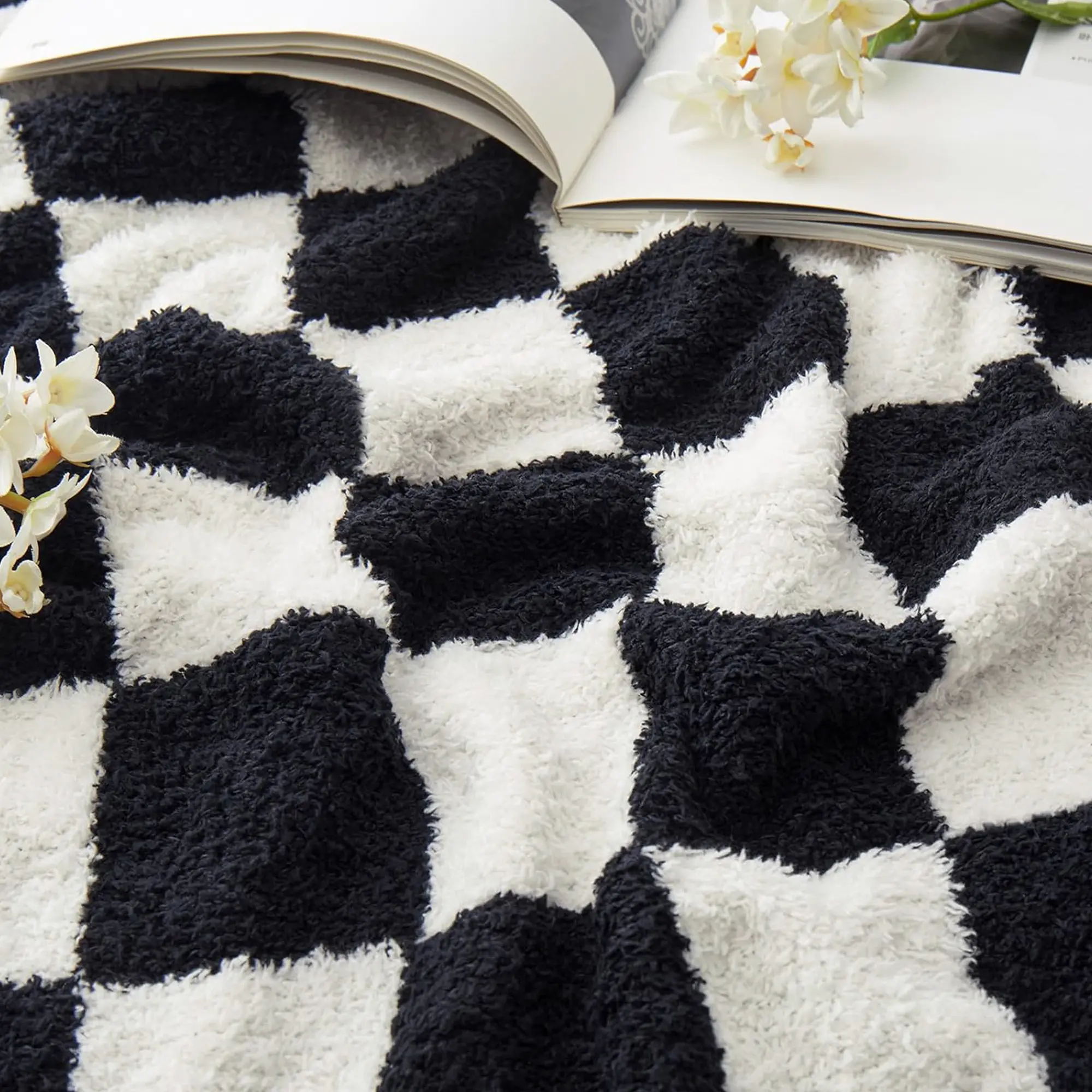Pattern Design: The delicate checkerboard pattern on the blanket is a classic pattern that never goes out of style. The simple style contrasting stitching adds a different aesthetic to the blanket. The furry touch will make you fall in love with it.