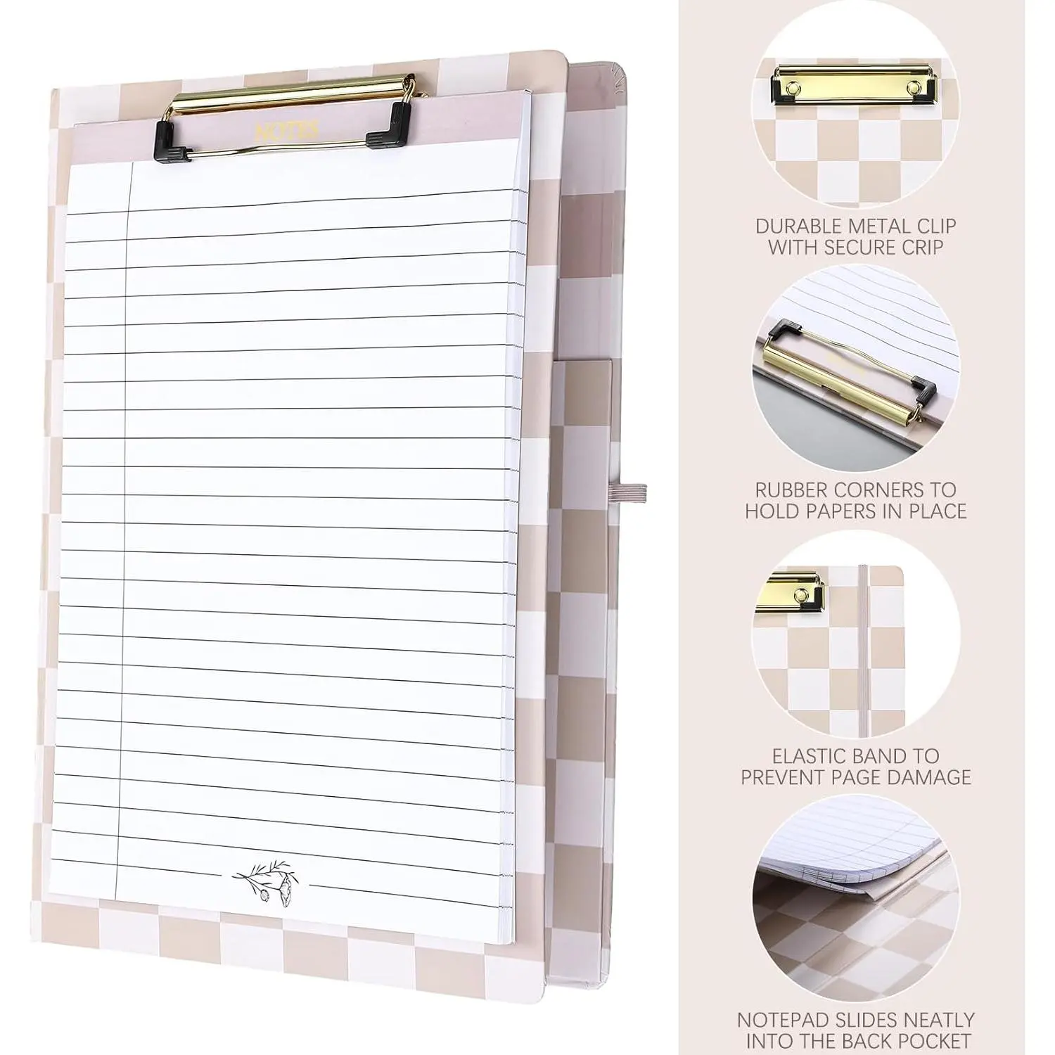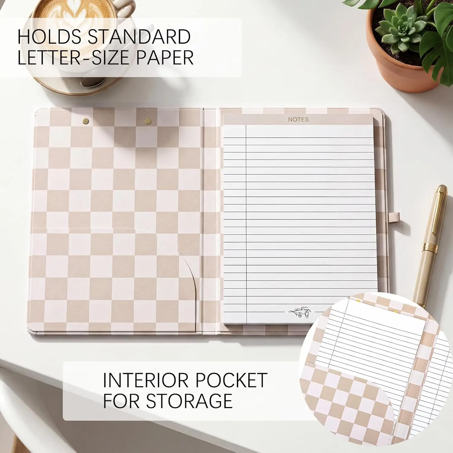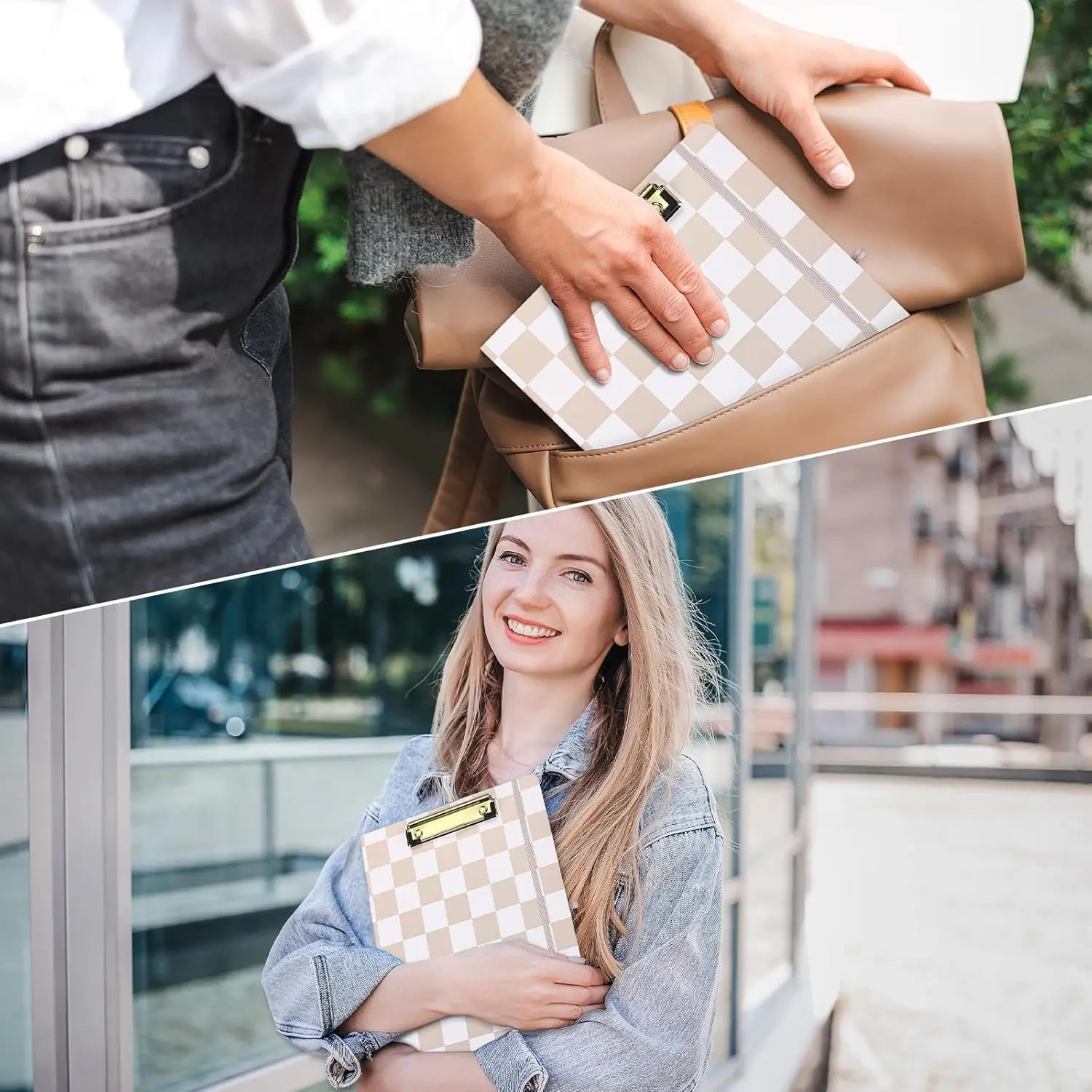 Stylish Design: the elegant checkered cover is simple yet sophisticated; The metal clip secures standard letter-size paper, while the chic design adds a polished, professional finish; A versatile and durable companion for office use and beyond