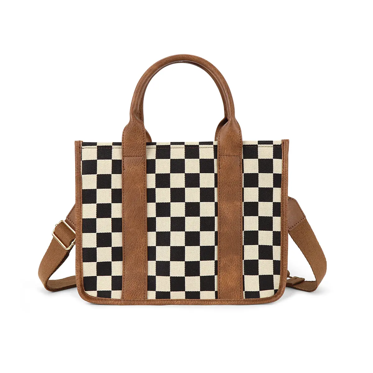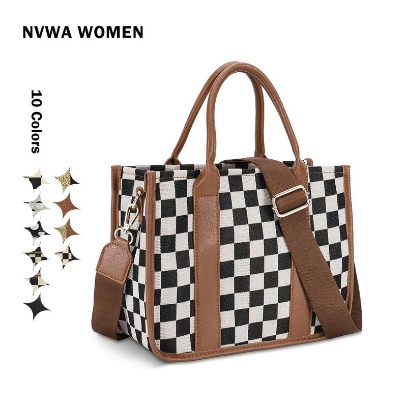 Checkered Crossbody Bag, Canvas Work Tote, Black and White Purse, Casual Tote Handbags for Work & Travel