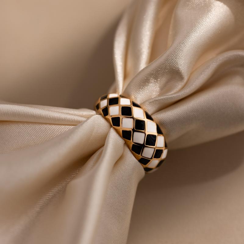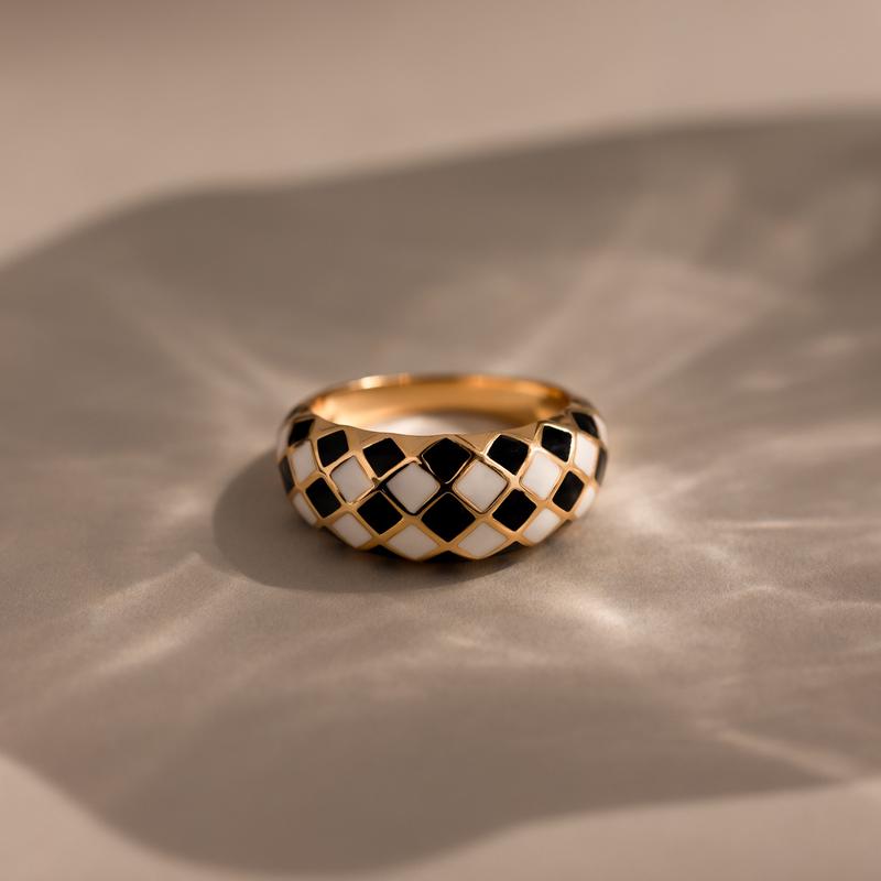 A bold fusion of retro charm and modern edge, our Checkered Dome Ring makes a playful yet polished statement. Designed with a domed silhouette and glossy black-and-white enamel in a classic checkerboard pattern, it's the perfect everyday accent for lovers of quirky minimalism.