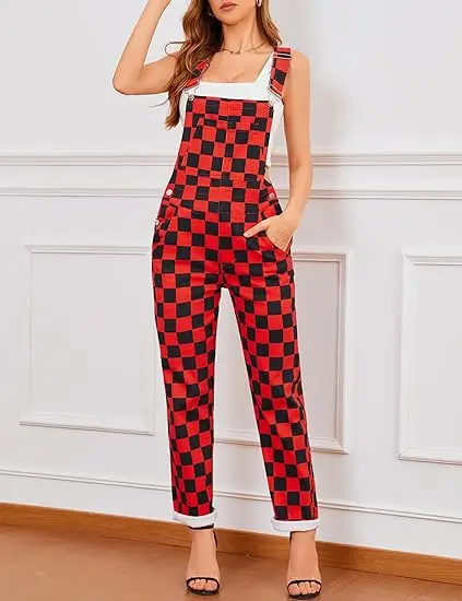 Sporty & Chic Checkered Style - Inspired by bold checkered patterns, these women’s overalls add a playful yet stylish touch to your Valentine’s Day outfits and everyday looks. The classic black-and-white checkered design creates a trendy, sporty vibe—perfect for casual dates, game day outfits, or street-style OOTD.
