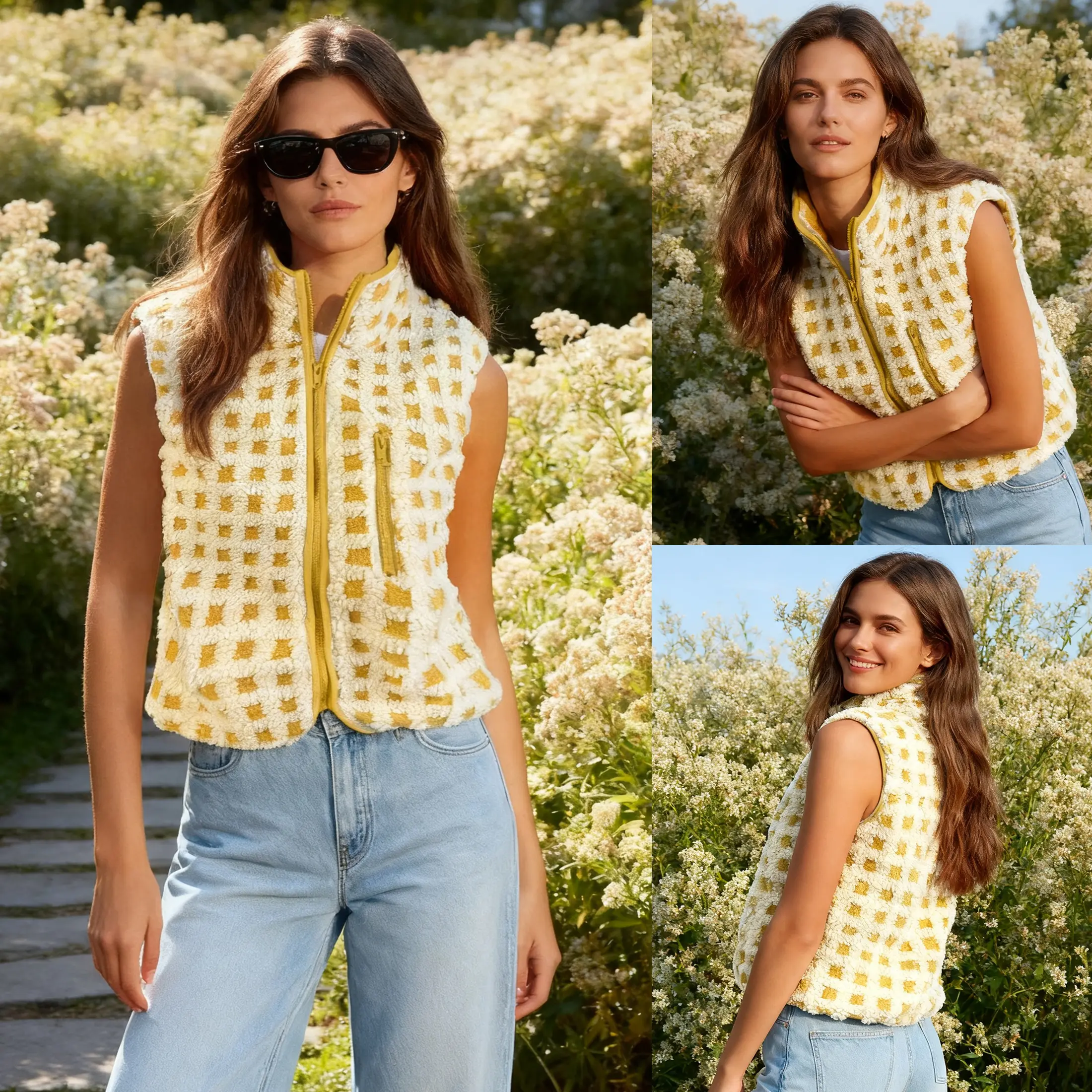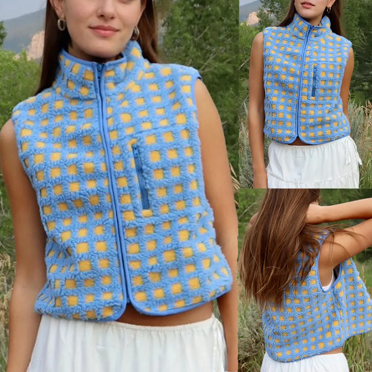 Design: This plaid vest for women is crafted with a soft, fuzzy fleece that offers warmth without the bulk. The high-neck design and natural waist fit make it a perfect piece for layering in the colder months. Ideal as a womens vest for everyday wear or special occasions
