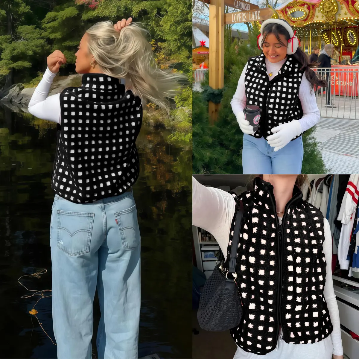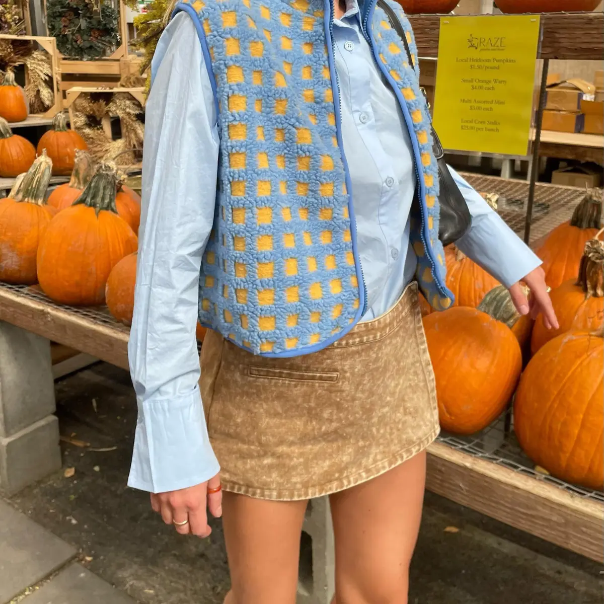 ·Sleeveless, high collar, chest pockets, loose fit, oversize, zip up. The highneck and natural waist fit make it a perfect piece for layering in the colder months. Reinforced chest pockets (fits phones/essentials) and sleeveless cut optimize mobility-perfect as a lightweight outer layer for hiking trails or a chic urban layering piece over dresses.