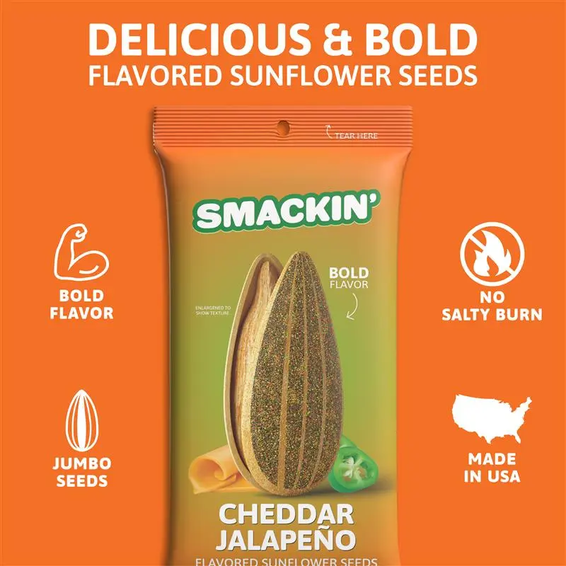 ·GET SMACKIN': The classic sunflower seed reimagined with bold flavors, jumbo sunflower seeds and no more salty burn. Every small-batch of hand crafter sunflower seeds is coated in gourmet seasoning and finished with a signature roast.