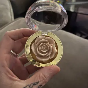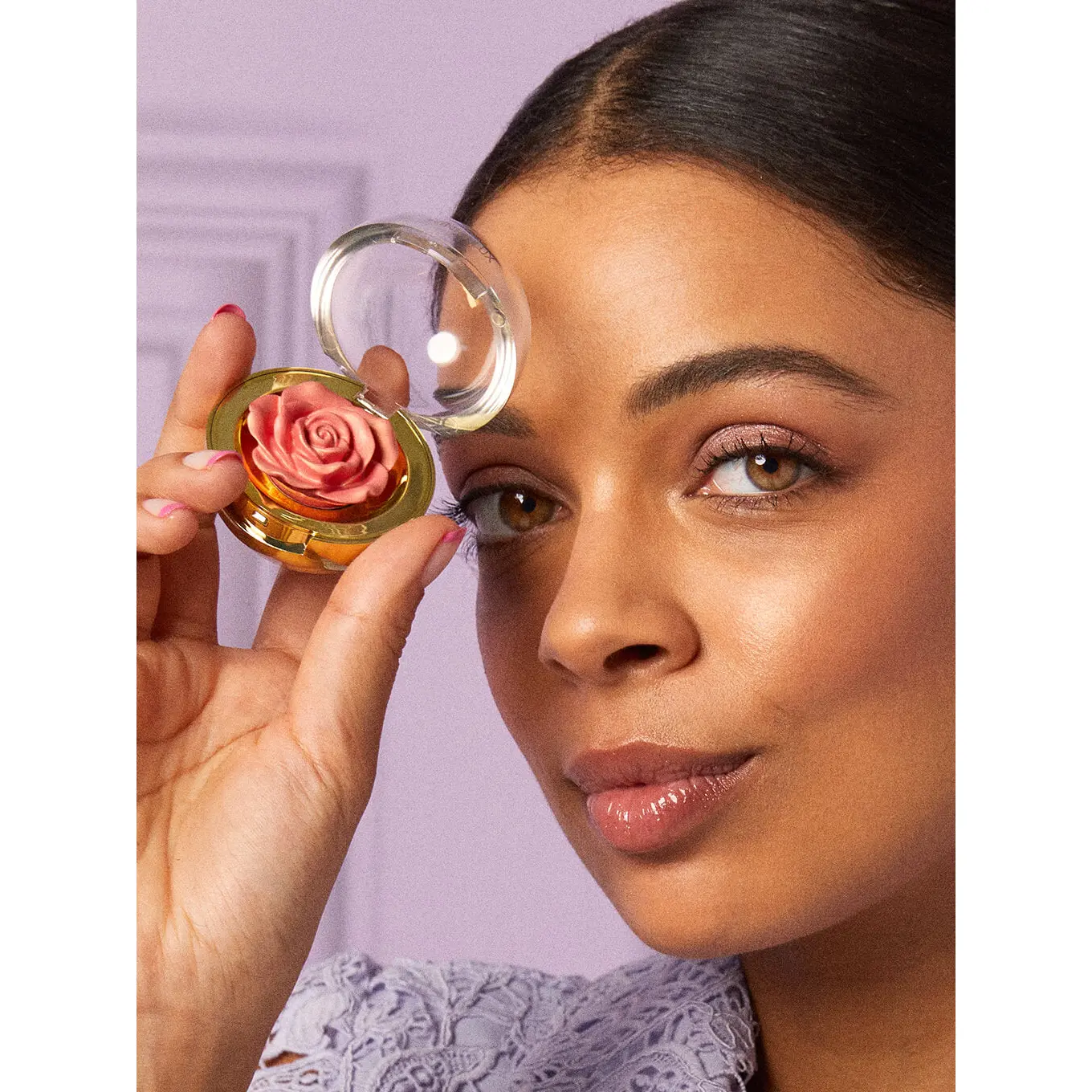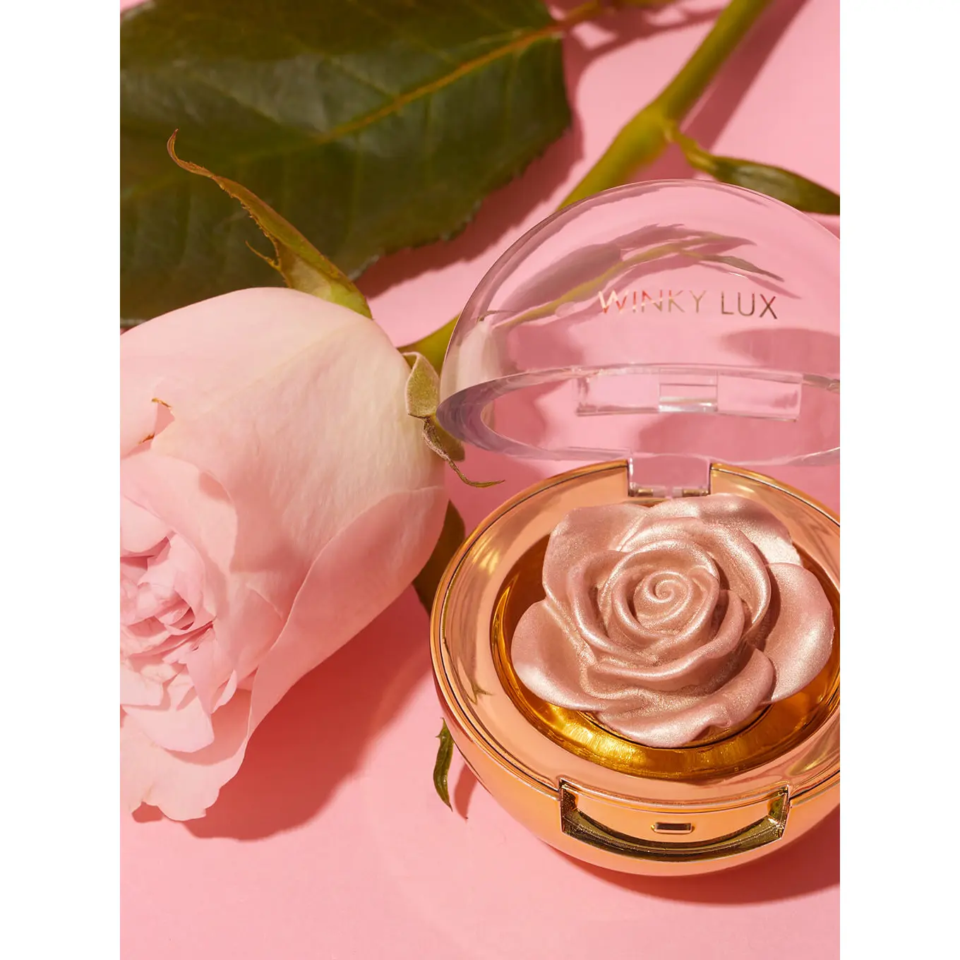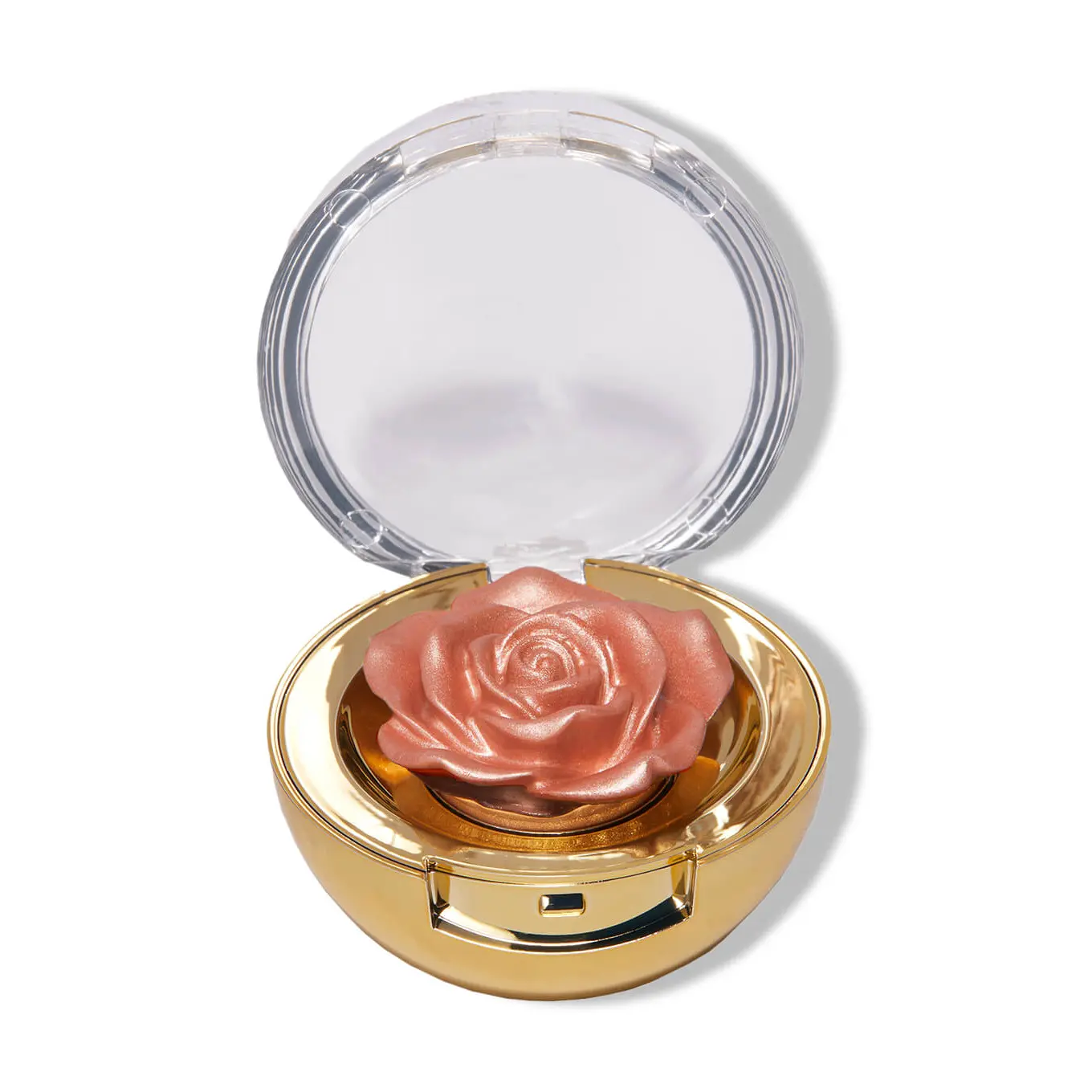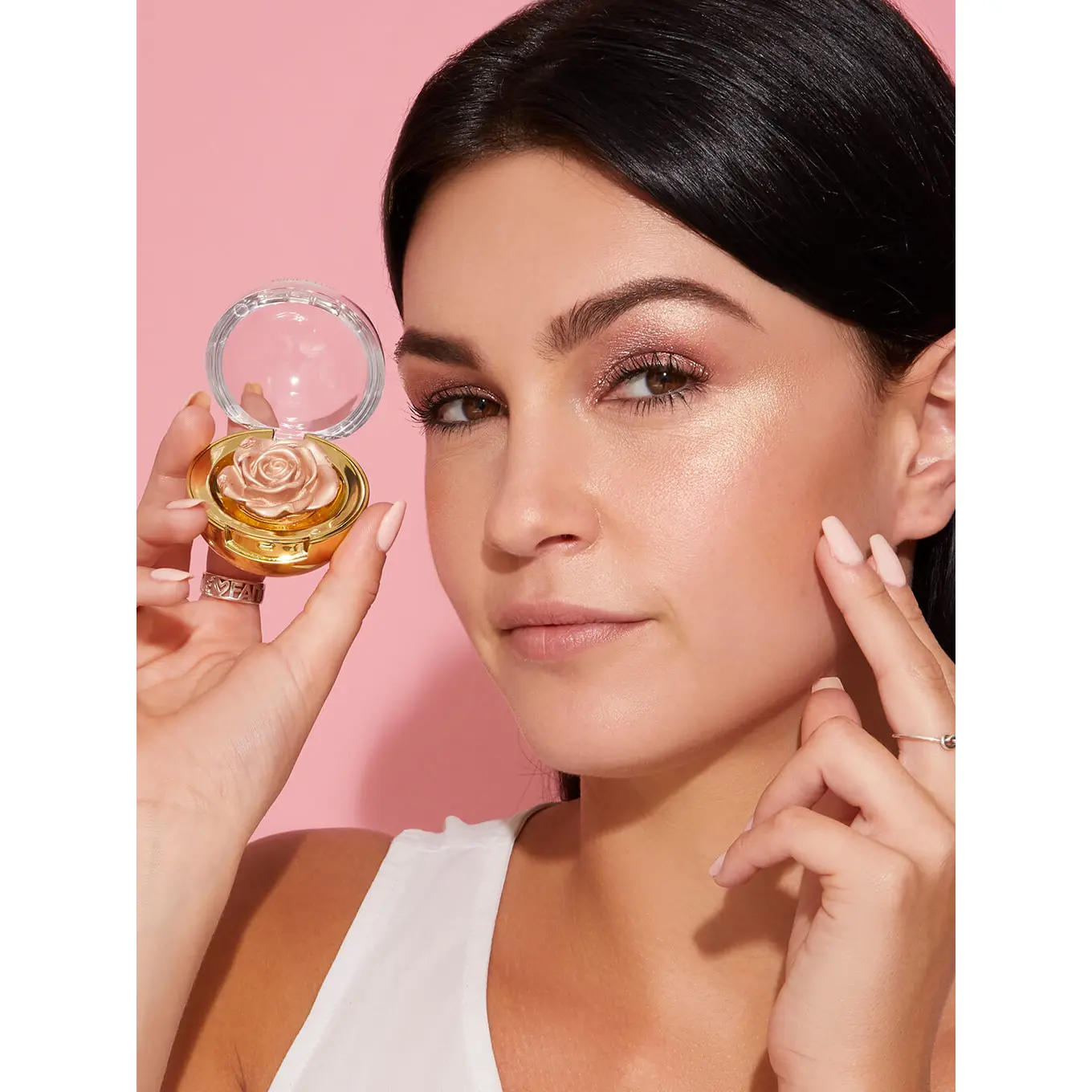 Pop those cheekbones with Cheeky Rose Highlighter. This cream highlighter is infused with carnauba and vitamin E for effortlessly smooth results, leaving skin with a pearlescent dewy radiance. Uniquely set in the shape of a rose, this highlighter looks as beautiful on the shelf as it does on you.
