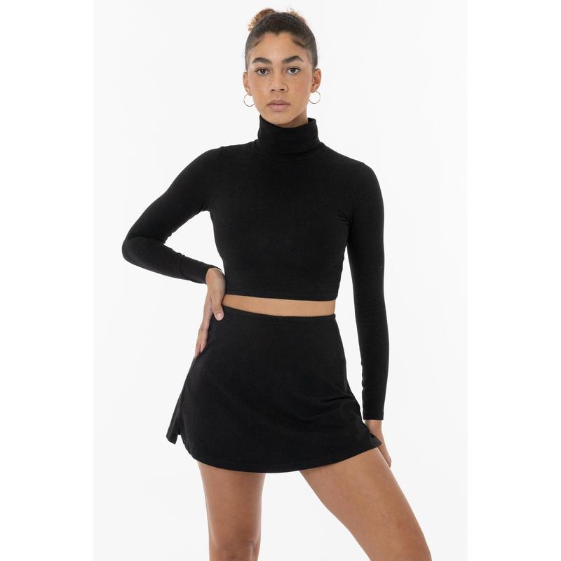 Turtlenecks and Tennis Skirts. That’s Los Angeles. Liri is shown here wearing our 8306GD Cotton Spandex Garment Dye Turtleneck and RGB300 Tennis Skirt. Finish the look with our 83280GD Garment Dye Legging. Made in South Central, Los Angeles by experienced workers earning fair wages. #thatslosangeles #losangelesapparel #turtleneck #tennisskirt #madeinusa