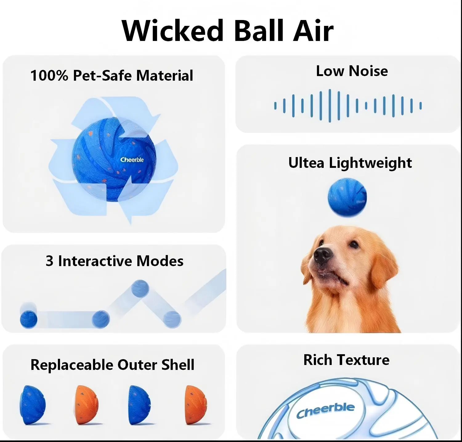 I bought this Wicked Ball Air cheerling toy for my Chihuahua and she loved it. It's rechargeable and the best part is that it bounces on its own, keeping dogs entertained. It's made of good material and is very high quality; I highly recommend it.