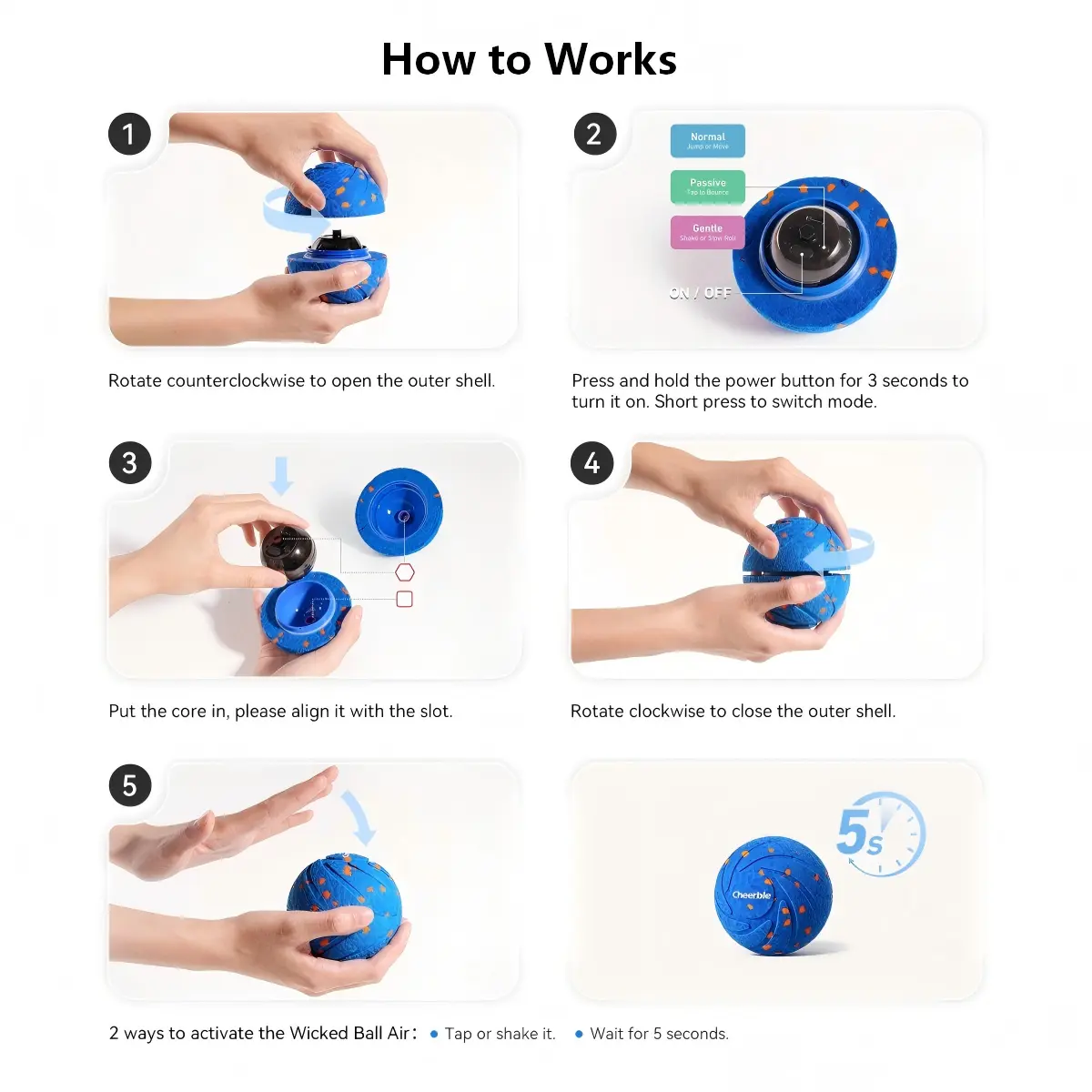 Cheerble Smart Interactive Dog Toy, Automatic Motion for Boredom Relief and Joy, Protects Dogs’ Teeth and Gums – Suitable for Small, Medium, and Large Dogs, Indoor & Outdoor Use