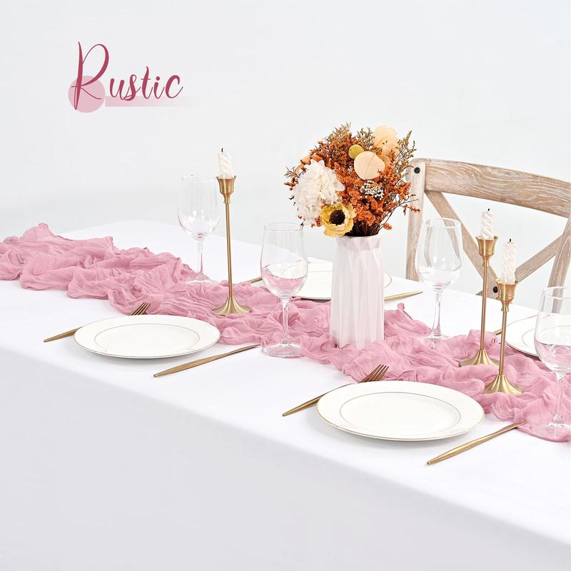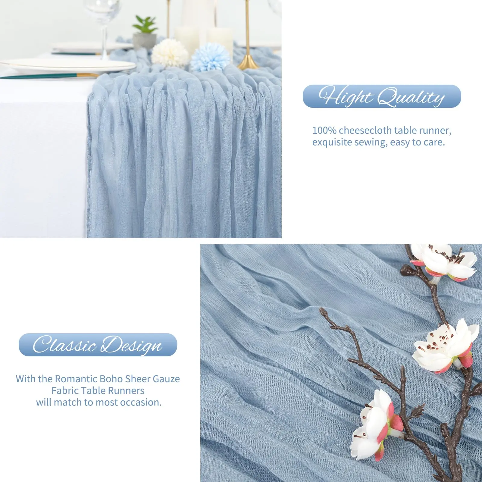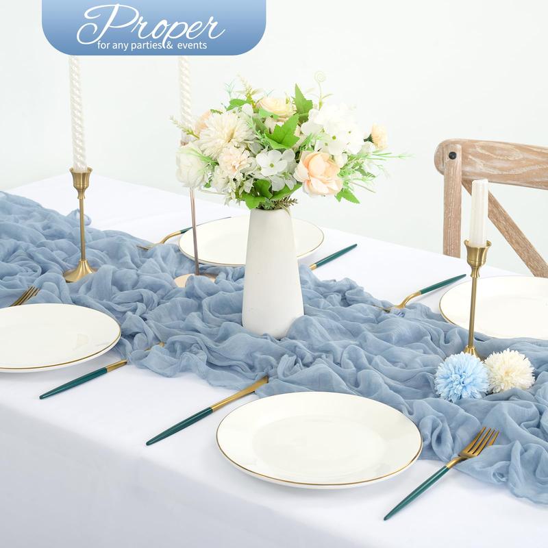 ·【Wide Applications】Cheese cloth table runner looks nice on various occasions, such as wedding, birthday party, baby showers, bridal showers, and more parties decoration. These soft gauze table runners can be draped over tables or chairs as a decorative piece, adding a touch of elegance to any event.
