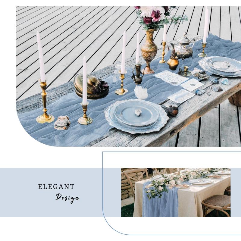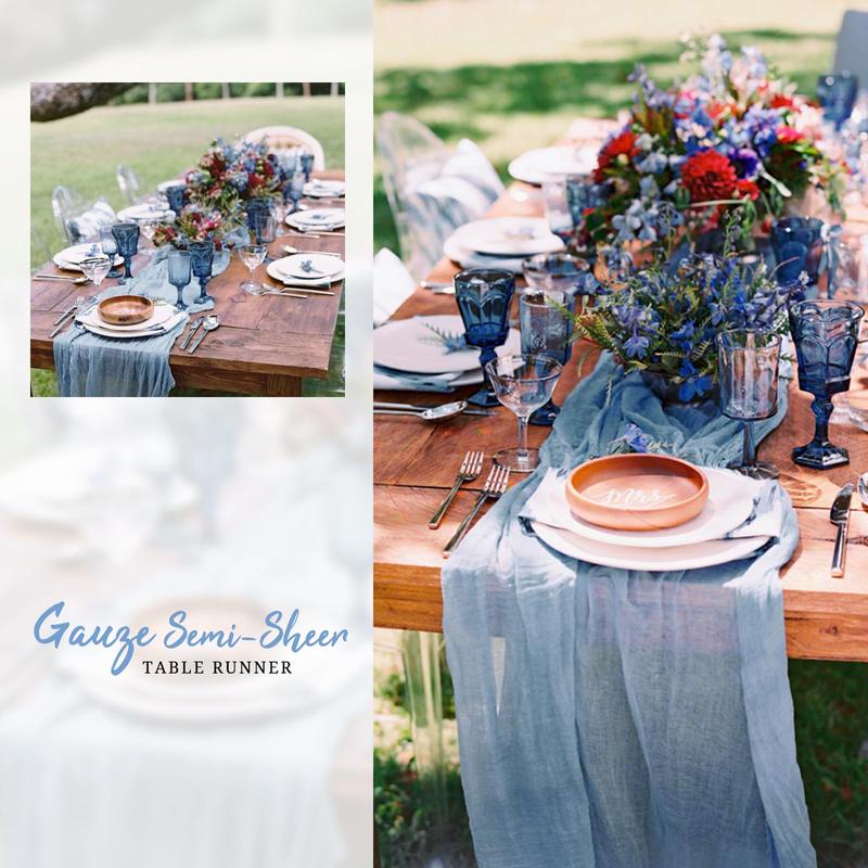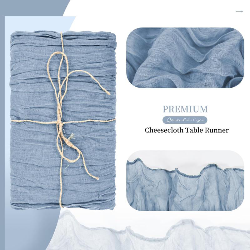 Made from 100% premium gauze polyester, these cheesecloth table runners offer a soft, romantic drape that instantly elevates any setting. The natural texture and semi-sheer finish create a dreamy bohemian look — perfect for rustic weddings, bridal showers, and cozy gatherings. Each runner measures 10FT (21.5"x120"), long enough to cover standard banquet tables with a beautiful cascading effect.