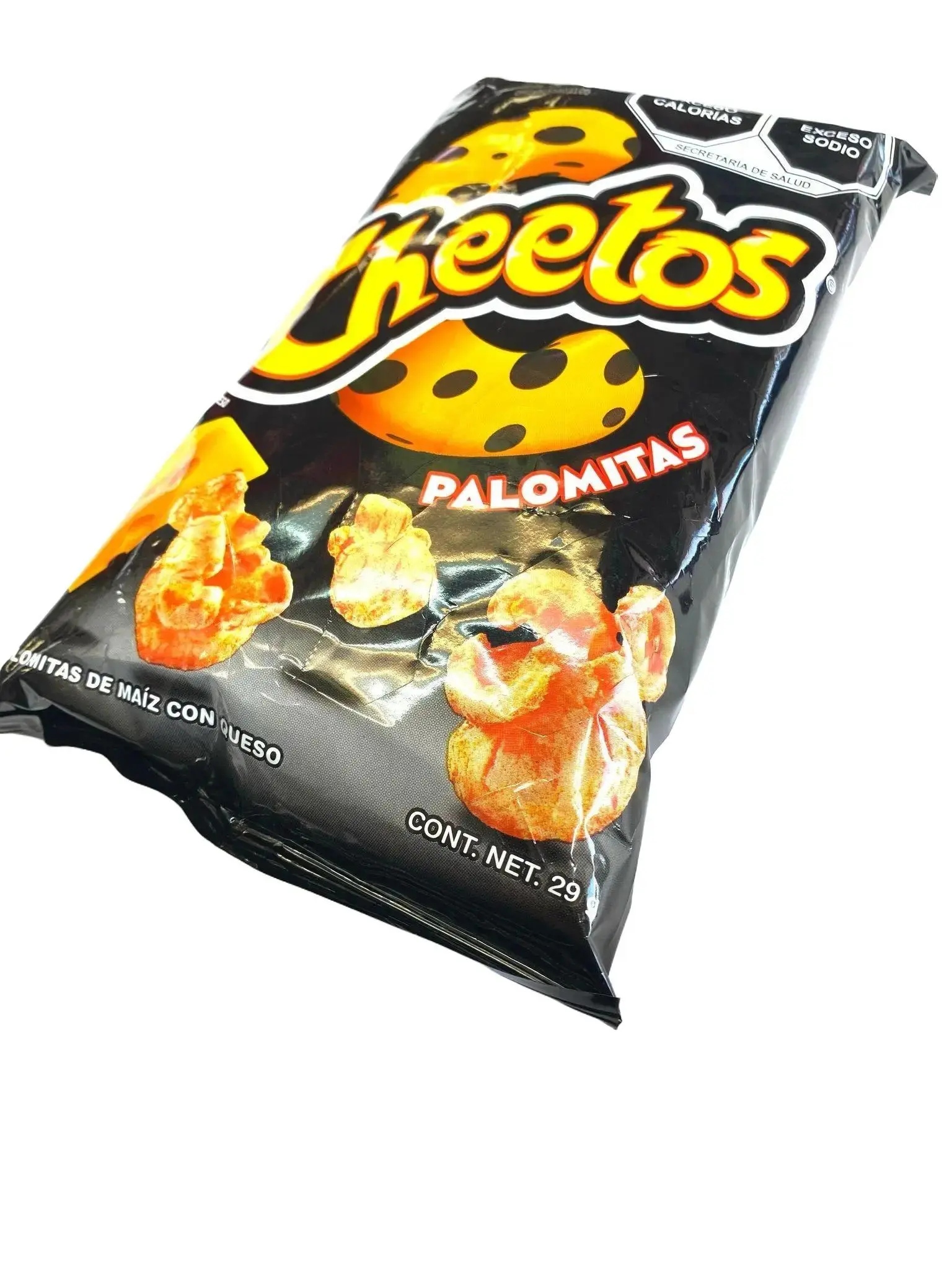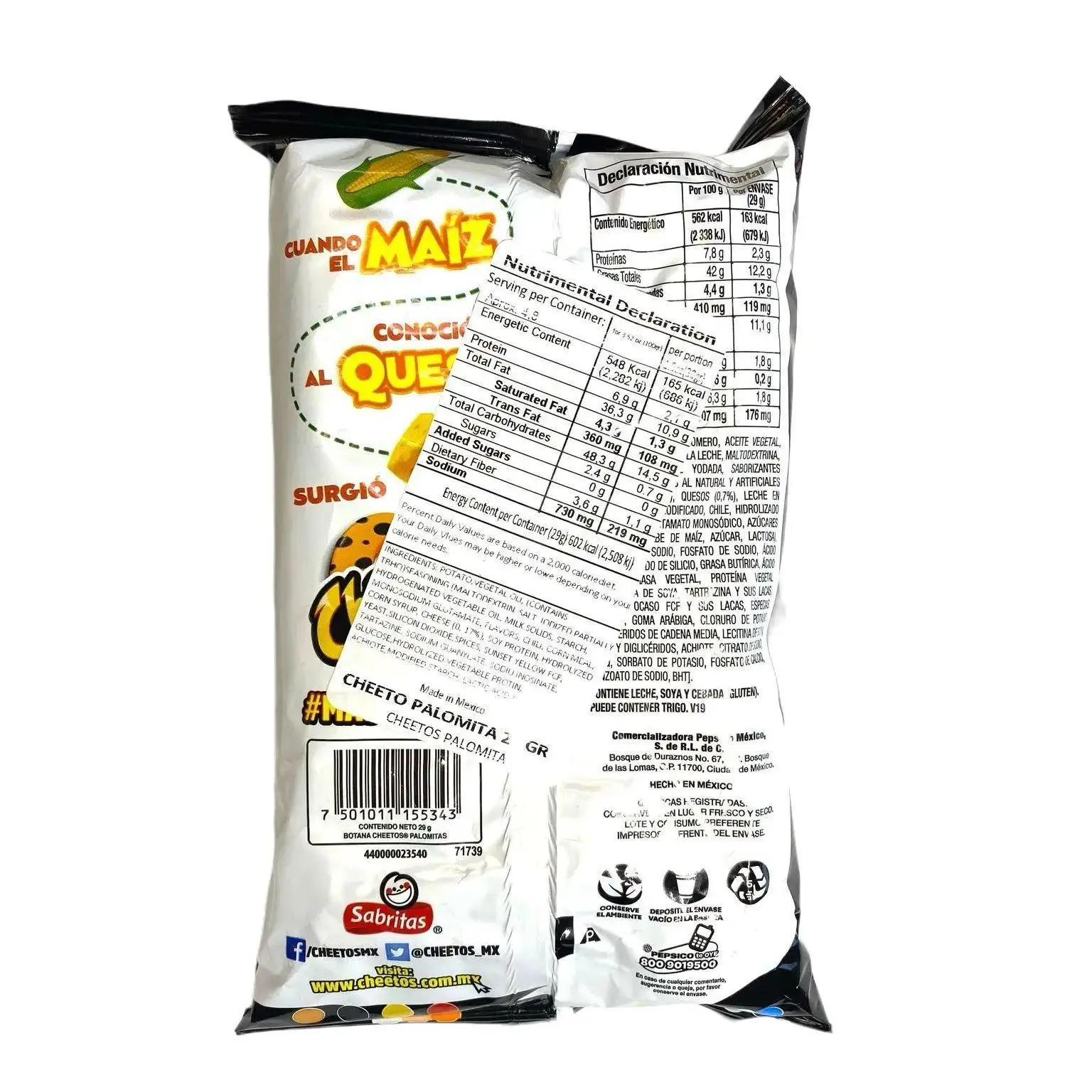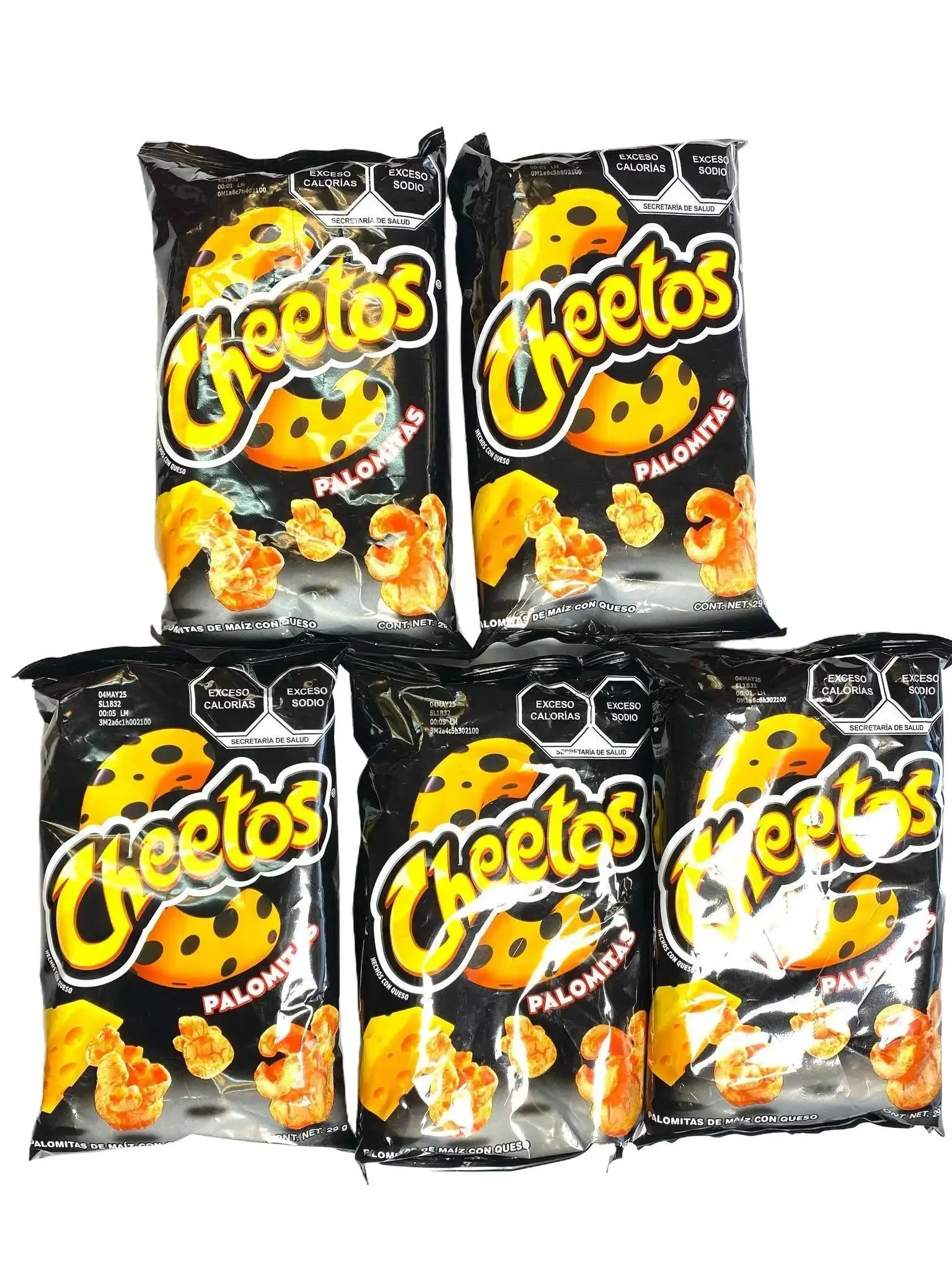 Enjoy a delightful snack with our 5 PK Cheetos Palomitas Mexican Chips, Cheese SNACK. Each bag contains 29 grams of these tasty treats, perfect for a quick and satisfying snack.
