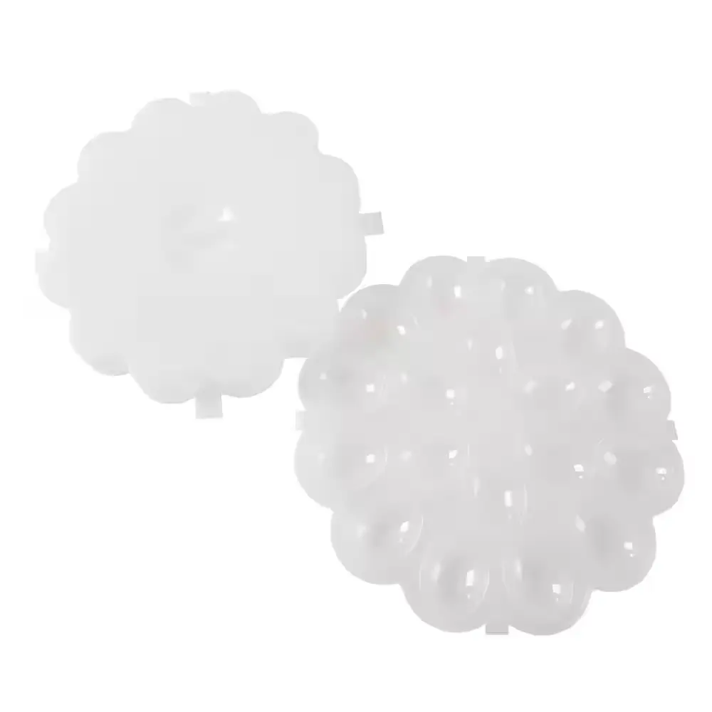 Whether you need to store your prepared appetizer in a fridge before dinner time or lay them out on a buffet table for serving, this set of two Deviled Egg Containers by Chef Buddy is exactly what you need for holiday parties, barbecues, or work potlucks. These clear plastic egg carriers with lids can each hold 18 hard-boiled or deviled eggs in the perfectly sized half-moon oval indents, 36 in total between the two egg containers, and stack nested together when empty for convenient storage. The snap-on lids make these travel platters perfect for use as catering trays and help secure your delicious treats during transport or inside a crowded refrigerator on game day.