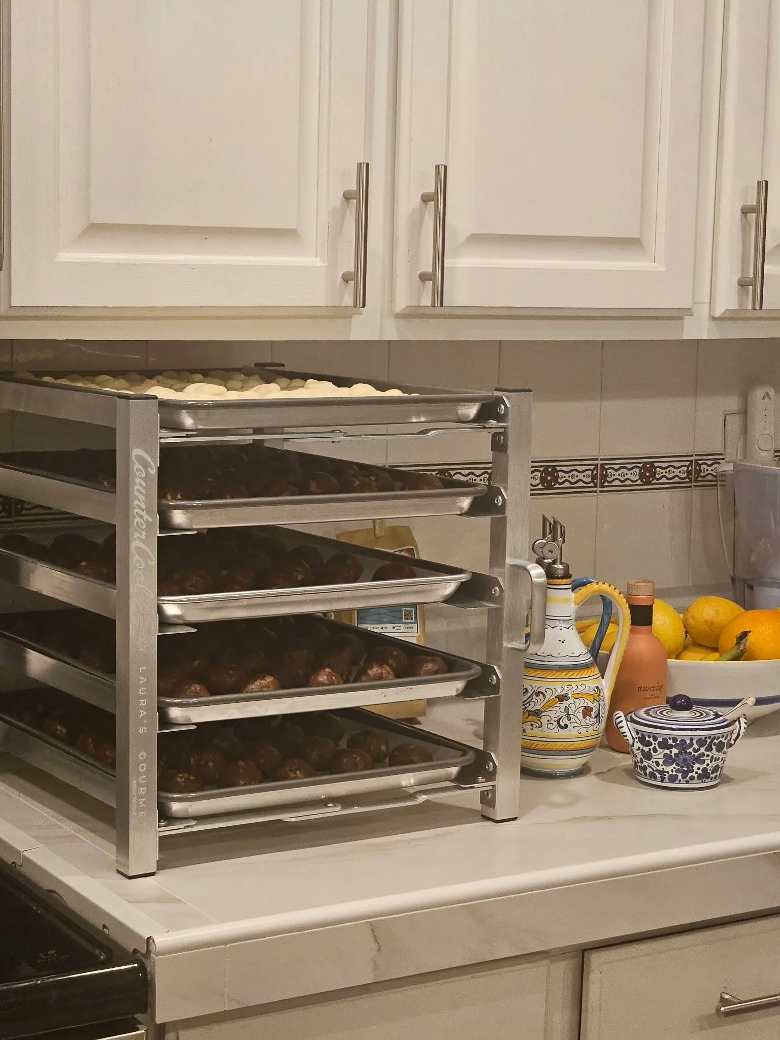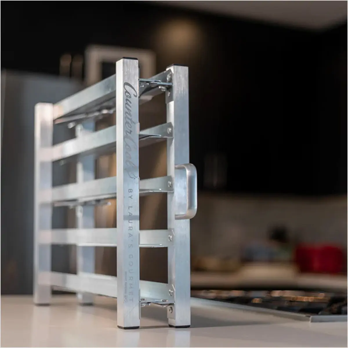 Laura’s Gourmet proudly introduces CounterCool®, the space-saving rack that brings professional kitchen efficiency into your home. Lightweight, foldable, and beautifully functional, it’s designed by a chef to help you cook smarter and stay organized, no matter your kitchen size.