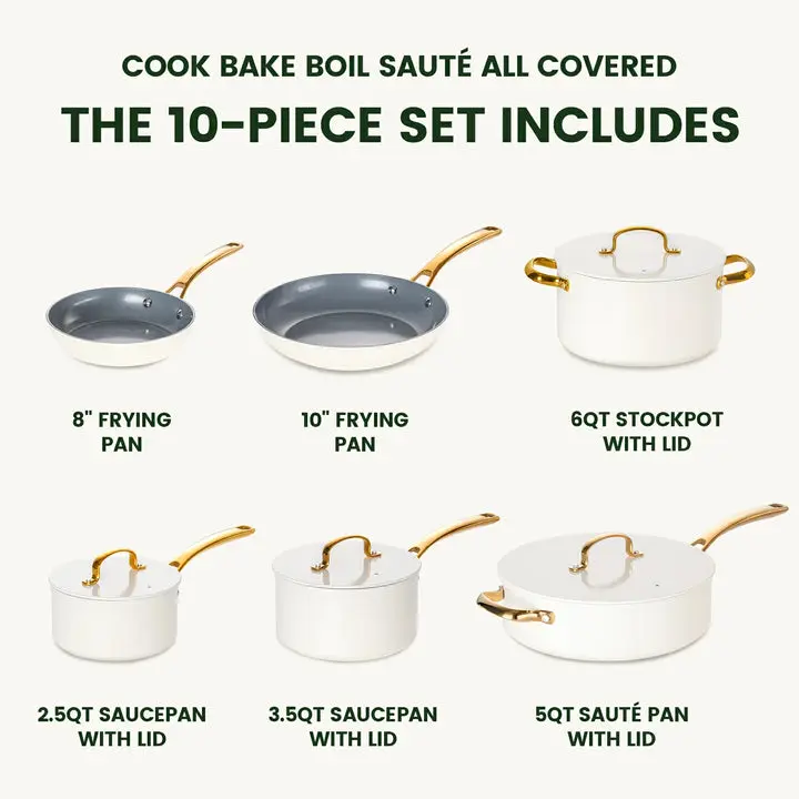 The set includes 10 pieces, ensuring you have everything you need for healthy, delicious meals. Trust our cookware for your daily cooking needs. 🍳 Start cooking worry-free today!