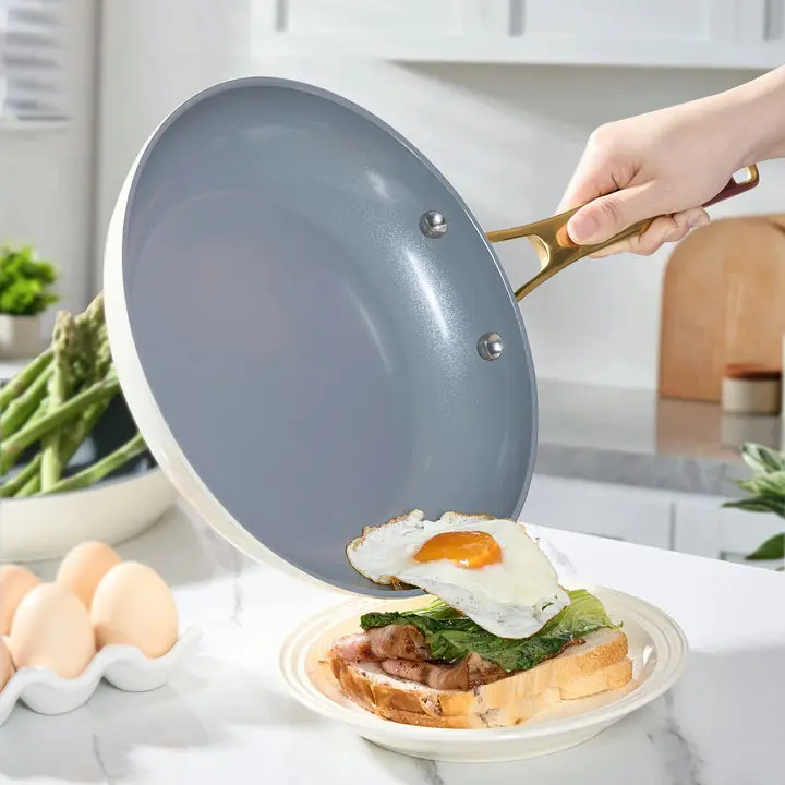 Welcome to carefree cooking! Our cookware set features a ceramic coating free of harmful chemicals. Cook with peace of mind knowing your meals are safe. 🌟 This ensures your family enjoys healthy, non-toxic meals every day.