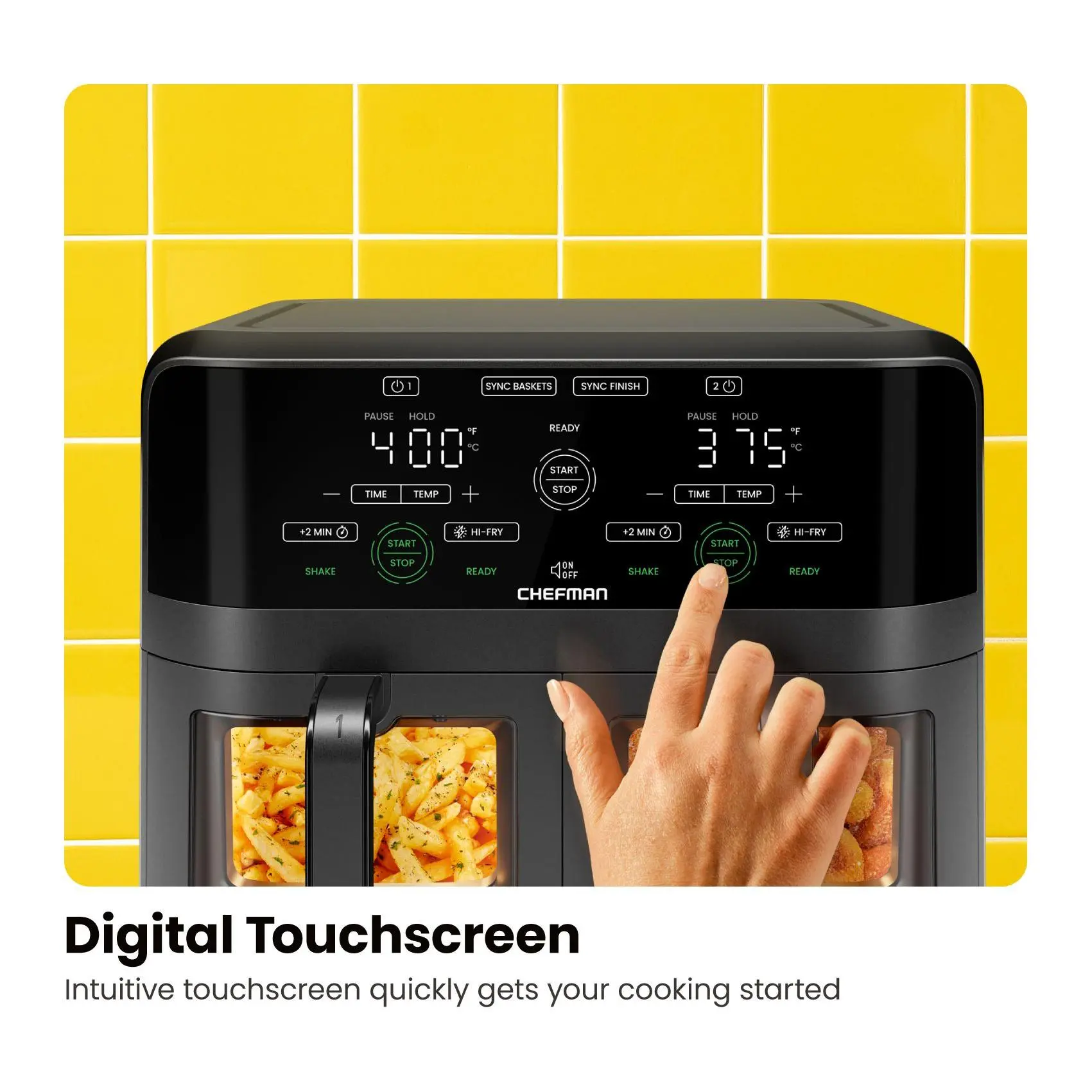 Elevate your kitchen game with the Chefman TurboFry Touch Dual Window 6-Qt Air Fryer, a revolutionary appliance that lets you cook two different dishes simultaneously without sacrificing flavor or texture. With its sync-finish feature, your meals will be ready together, making dinner preparation a breeze. Plus, the unique hi-fry button ensures an extra-crispy finish every time. From Chefman.