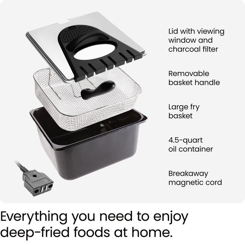This is a great fryer,,so easy to take apart to clean and everything just conveniently stores inside the basket. This is to me the Cadillac of fryers,,love the charcoal filters in the lid nice touch.