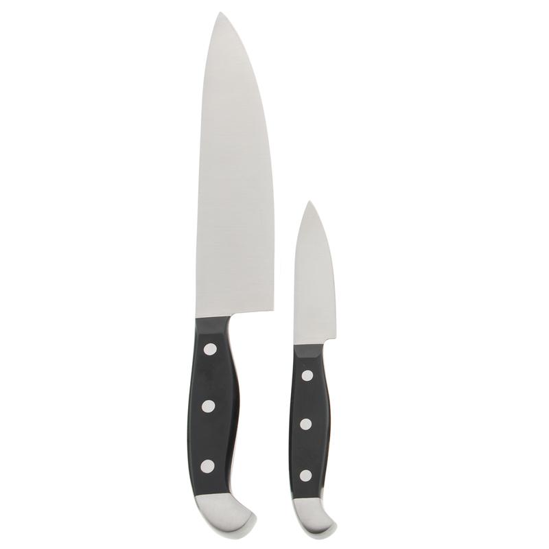 The Statement 2-piece knife set features the perfect pair for tackling daily kitchen tasks with ease. This set includes the all-rounder 8-inch chef’s knife, perfect for chopping herbs and dicing onions, and the 3-inch paring knife, ideal for peeling vegetables and segmenting fruit.