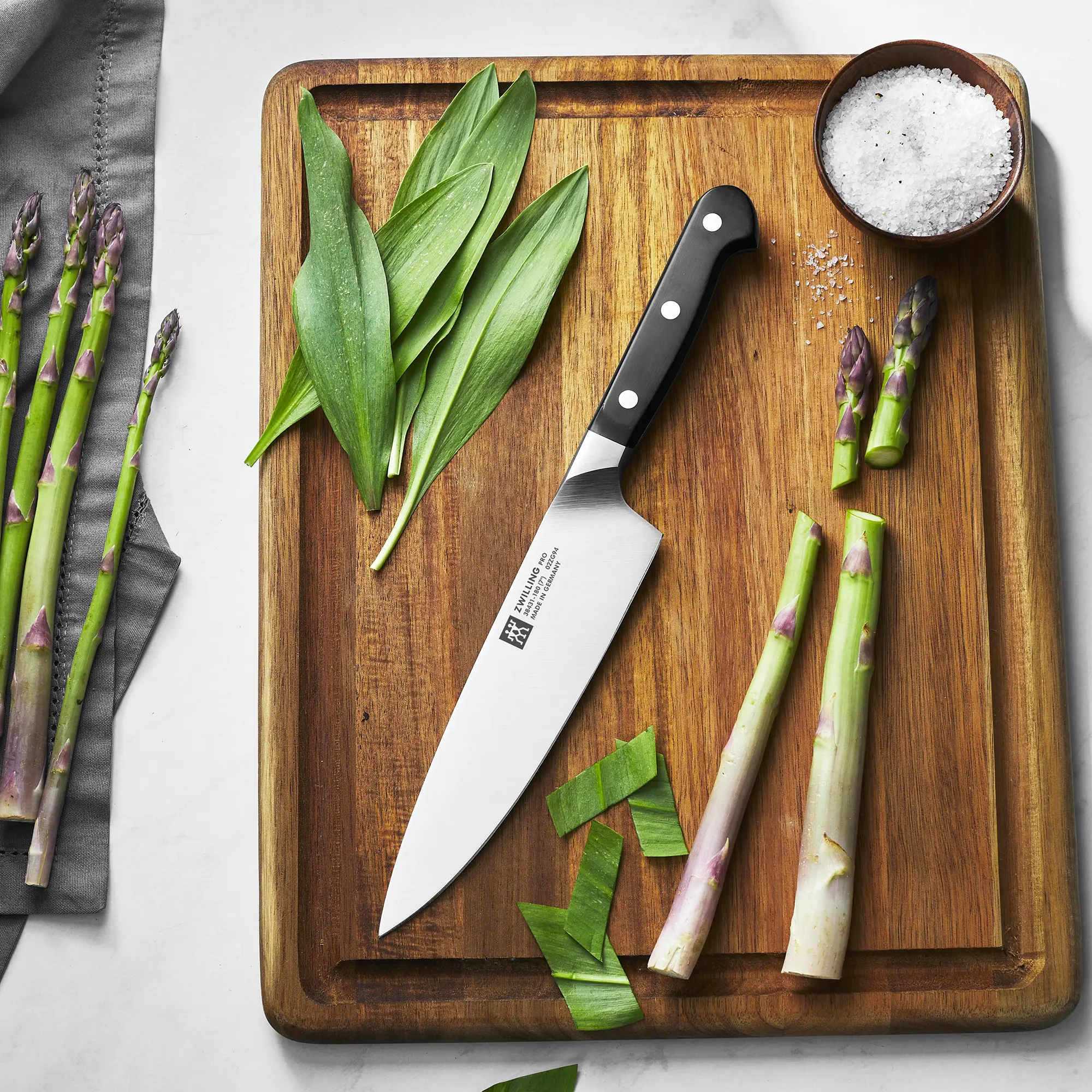 The Pro Slim 7-inch chef’s knife isperfect for all kitchen tasks. Chop herbs, dice onions, and mince garlic with confidence and ease. Pro Le Blanc Slim knives feature a medium-sized handle, a blade profile that is 9% smaller, and a weight that is 24% lighter than our original Pro knives. They are perfect for smaller hands. And the lighter weight provides increased nimbleness and comfort.