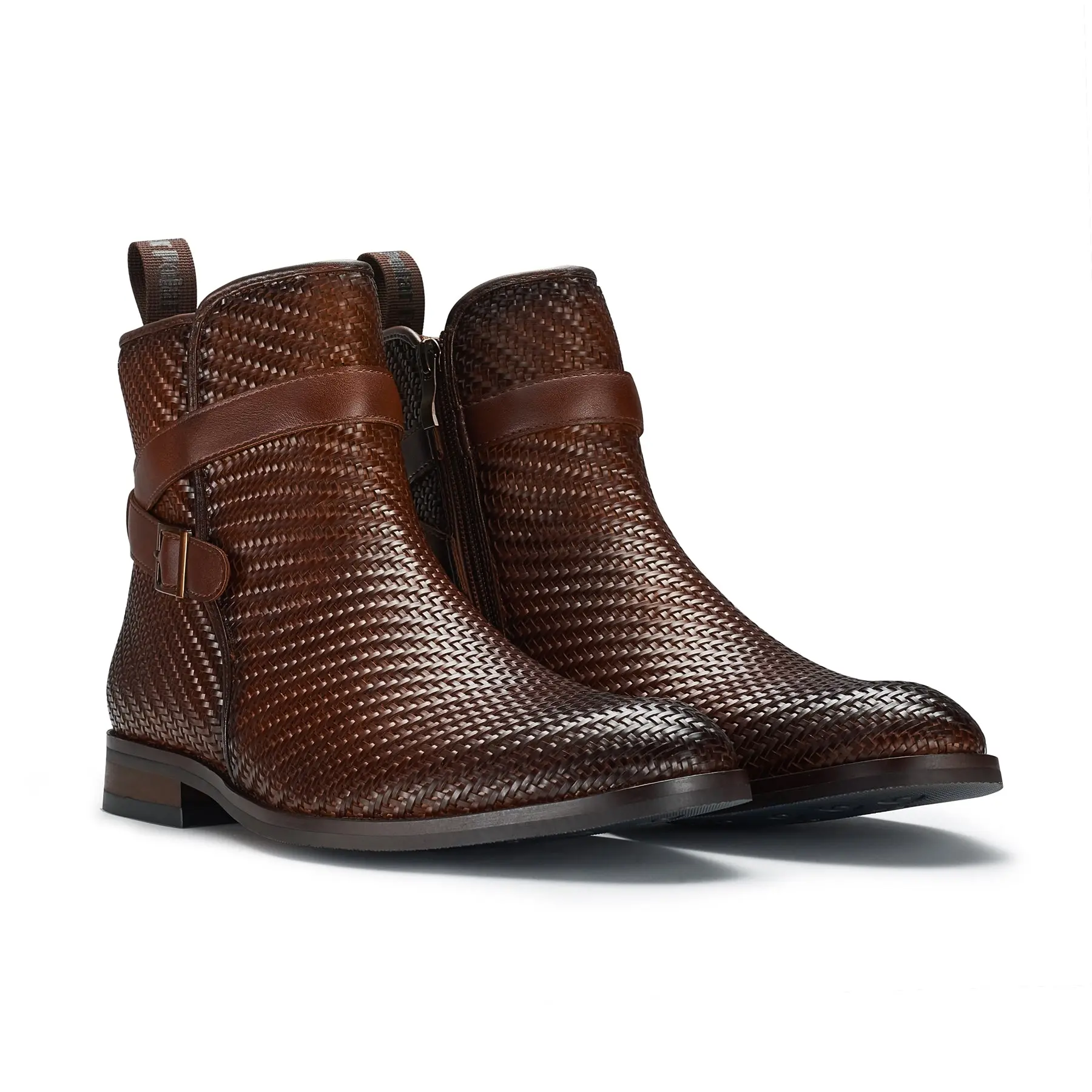 5. Polar Fox Derrick strapped chelsea boots, in Woven Brown, Men's Size 6.5 - 13