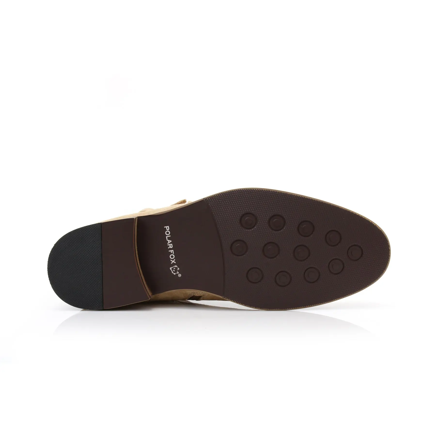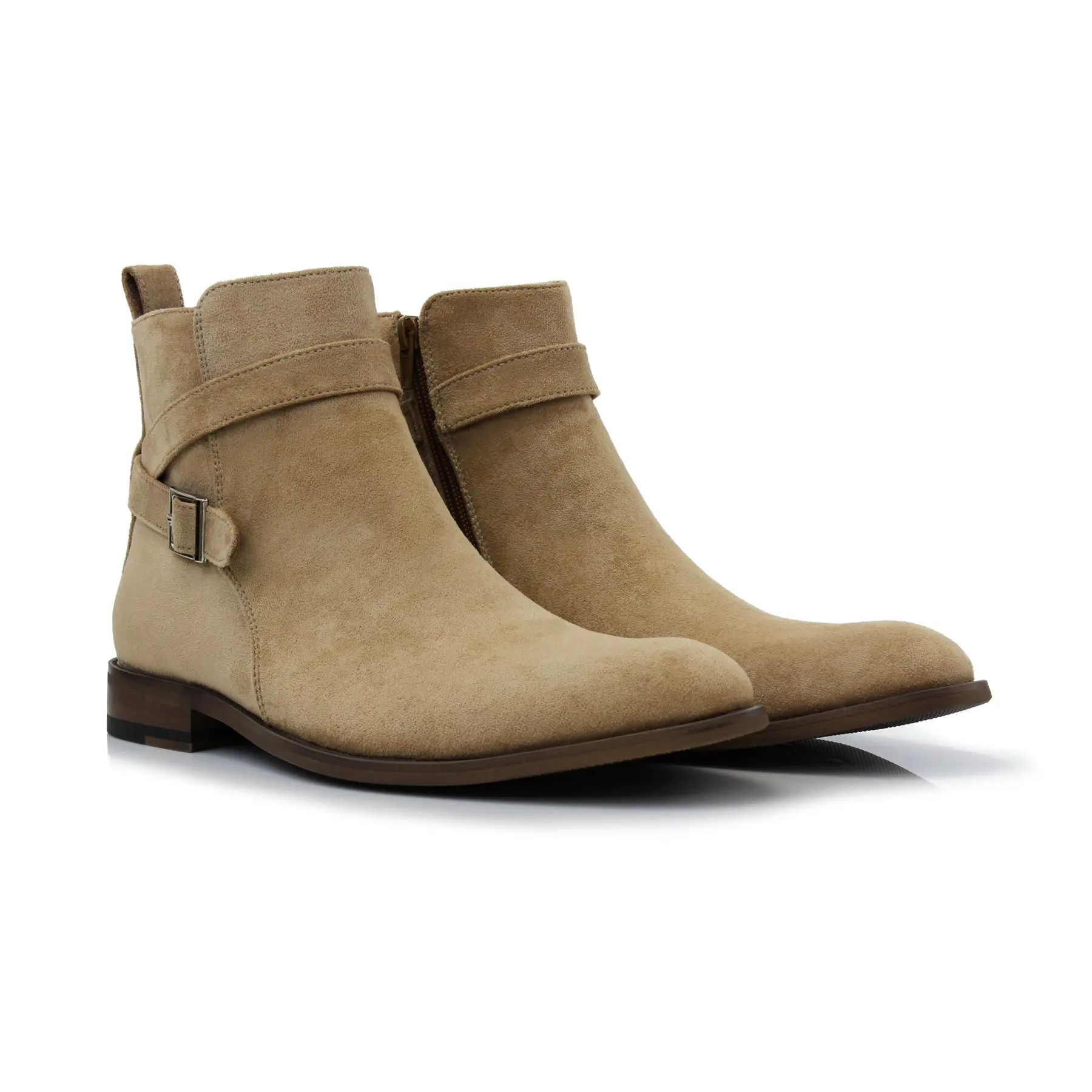 5. Polar Fox Derrick strapped chelsea boots, in Suede Beige, Men's Size 6.5 - 13