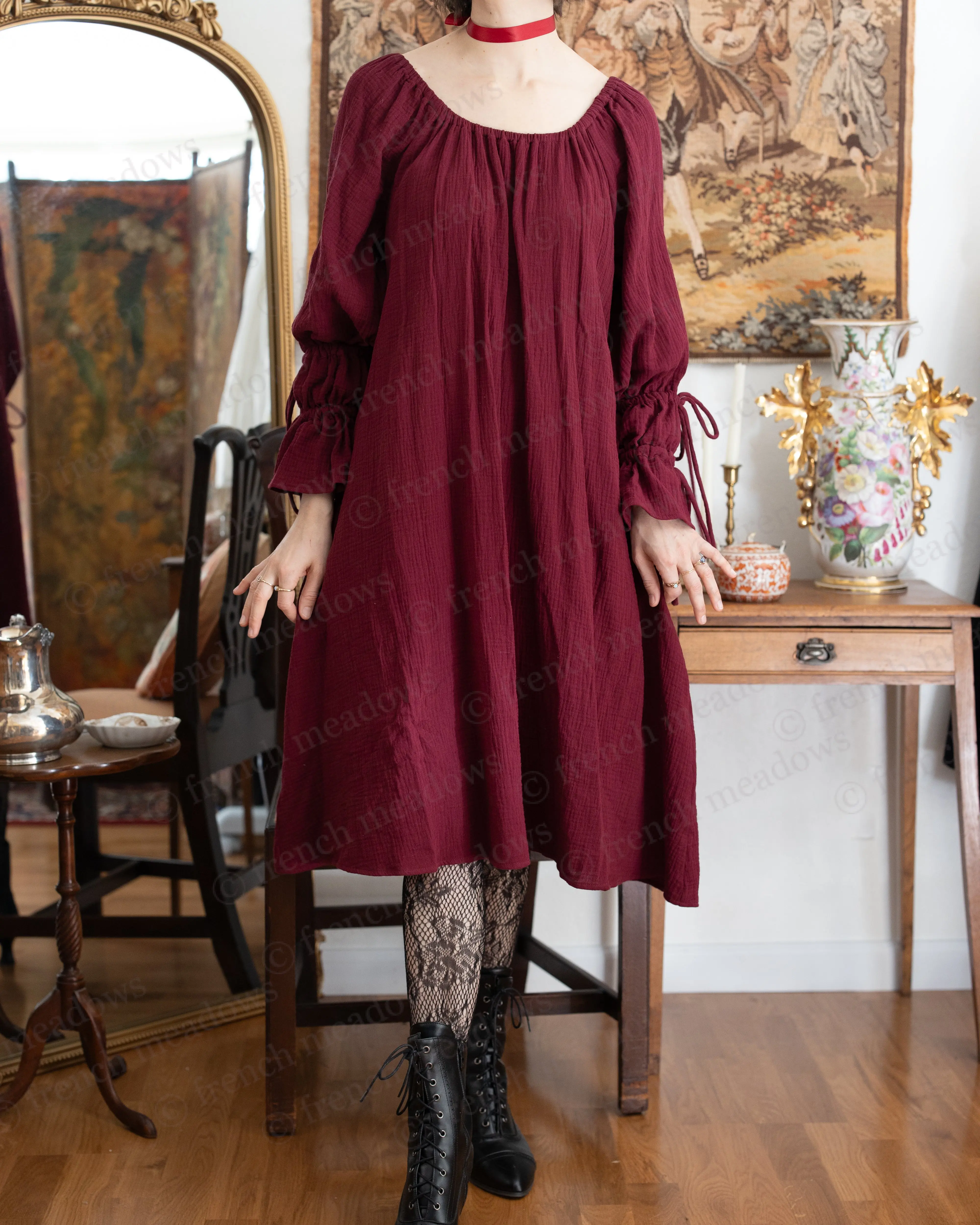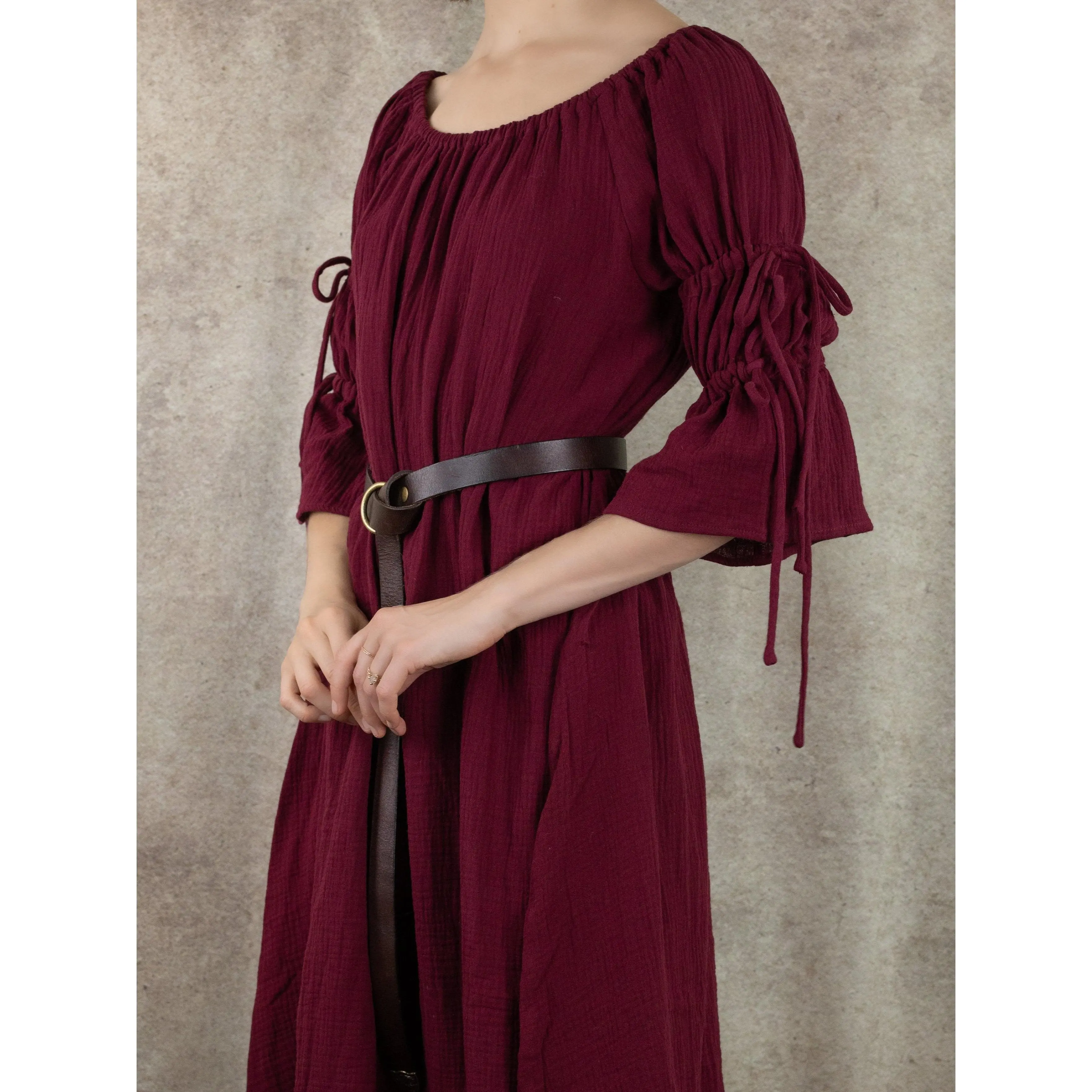 5. Dark Red Cotton Puff Sleeve Chemise